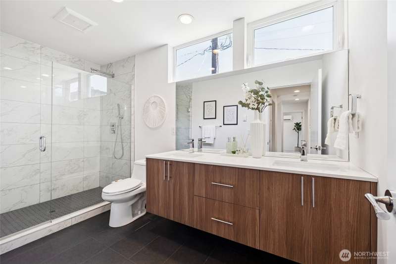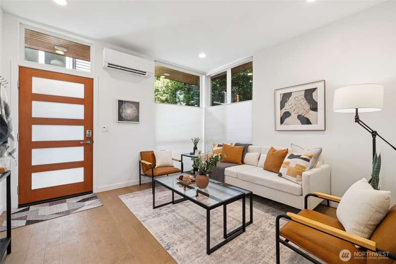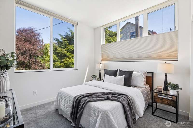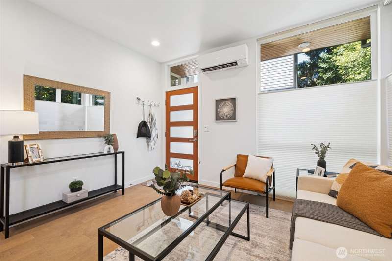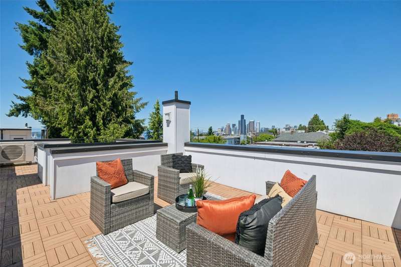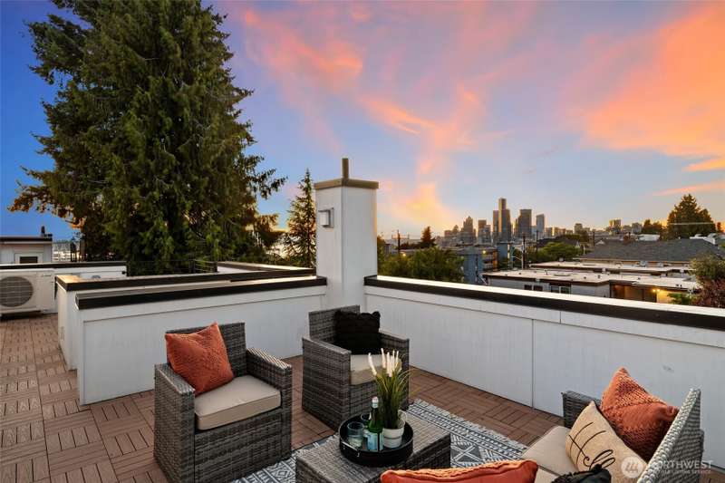 Beautiful Beacon Hill home made with modern design and sophistication. Stay cool in this 3 bed/1.75 bath AC equipped move-in ready home that's perfectly located in the heart of Seattle. Fantastic commuter location with easy access to Light Rail, I-5/I-90, and downtown just minutes away. Engineered hardwoods and new carpets welcome you in to each light filled space. Kitchen is equipped with stainless steel appliances and luxury cabinetry. Primary suite level includes walk-in closet, fully tiled bathroom, convenient laundry, and spacious primary bedroom with floor to ceiling windows featuring downtown views. Rooftop deck is perfect for entertaining guests with impeccable views of the city and sunsets. No HOA. Inspection report available.