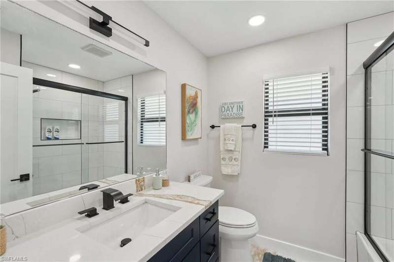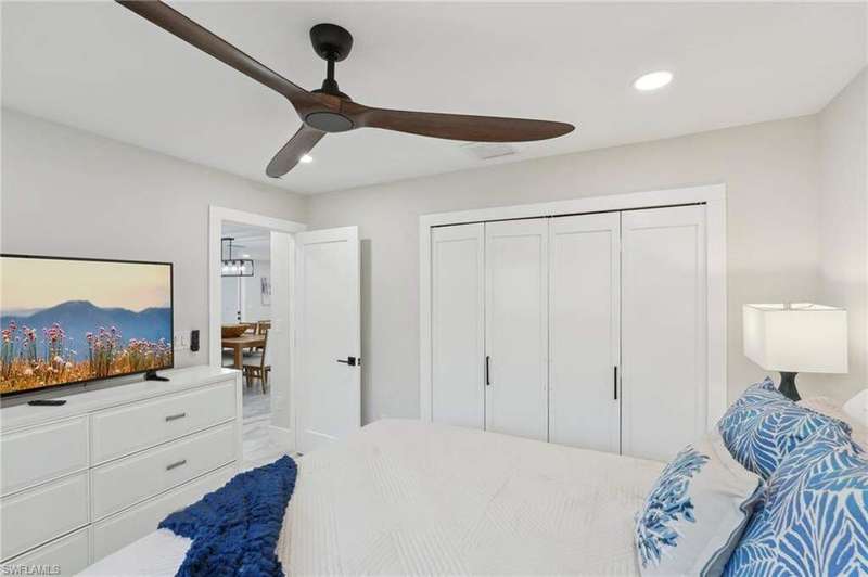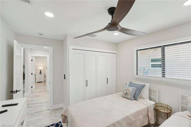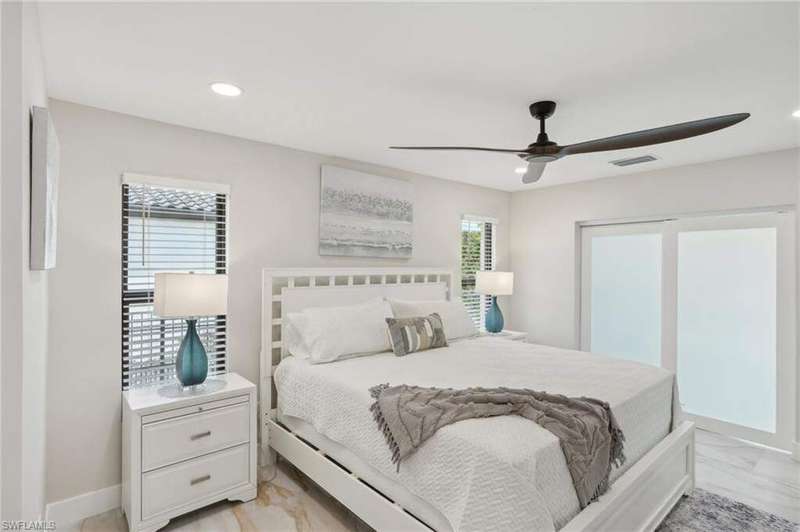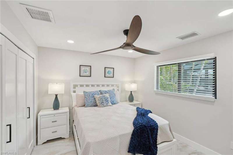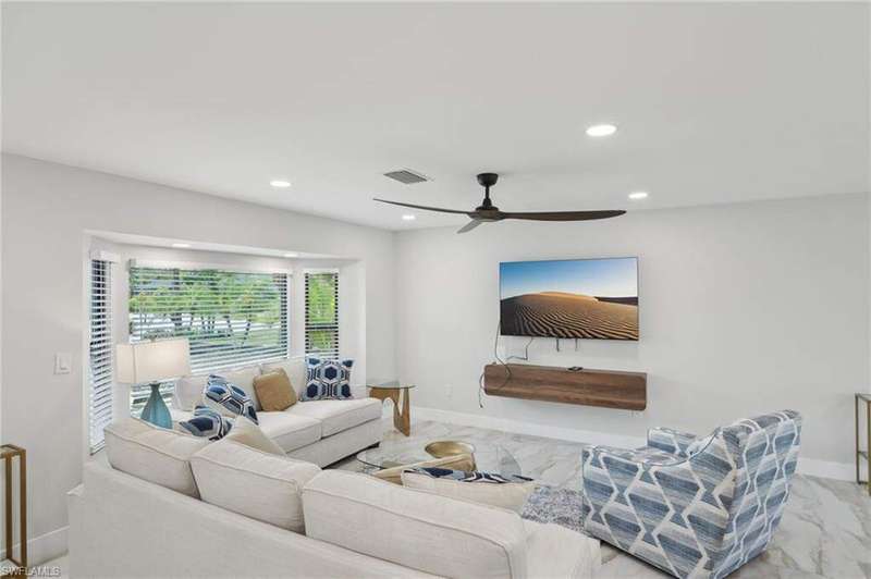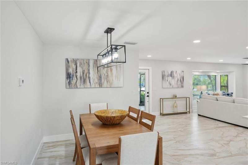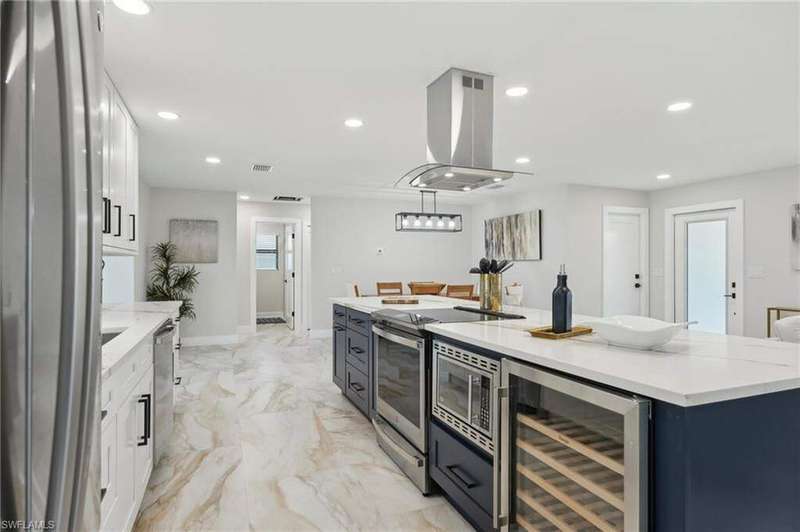 PRICE SLASHED OVER $300K,SELLER MOTIVATED! Sleek modern elegance best describes this turnkey furnished 3/2/2 waterfront pool home in the Laguna Shores community on Ft Myers Beach only steps to the white sand of Ft Myers Beach. The entire home has been remodeled from top to bottom with designer touches throughout. As you enter the home you will notice the wide-open floor plan with gorgeous tile, a large kitchen featuring two toned cabinetry, stainless appliances, stunning quartz counters and an oversized Island with a built-in wine refrigerator. The ample sized primary bedroom with custom tiled en-suite bathroom also has a walk-in closet with a custom closet system. The huge bonus family room in the rear of the home has so much to offer. With soaring ceilings and sliders encompassing nearly the entire back of the home, it not only brings in the natural light but also provides a great space for entertaining. Step outside and relax by your private pool and spa and enjoy the wide water intersecting canal views. In addition to your own private dock and lift just minutes to open water, there is also a GRANDFATHERED covered keyhole dock perfect for an additional small vessel or water toys. This home is a must see for the pickiest buyer!