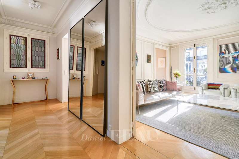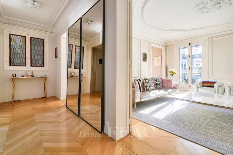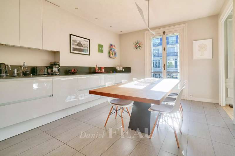 Boulevard Malesherbes. This 158 sqm apartment in perfect condition is on the 4th floor of a fine late 19th century freestone building. Bathed in sunshine, it includes an entrance hall, a spacious living/reception room opening onto a continuous balcony, a fully equipped kitchen with dining facilities, three bedrooms overlooking a courtyard including a master suite with a bathroom, wc and dressing room, a spacious study or possible 4th bedroom, a shower room, a utility room and a guest wc. With two cellars.