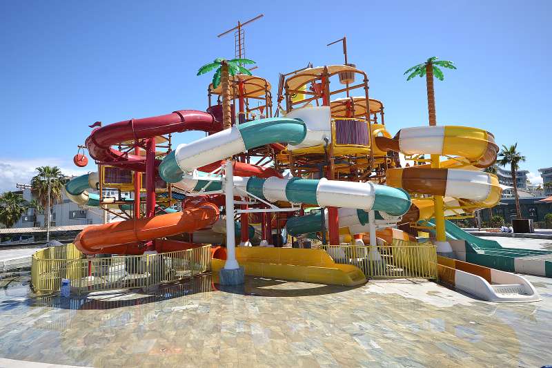 The project includes indoor and outdoor swimming pools, relaxation pool for adults, private pool for women, pool bar, sunbath areas, aqua parks for both adults and children, artificial coast, amusement parks, boutiques, playgrounds, cafeteria areas, basketball, football, volleyball and tennis courts, yoga areas, walking trails and running tracks, superheroes park, survivor concept adventure park for children, lunapark, kindergarten, train route, ice rink, event square for special ceremonies, open-air shopping mall, open-air cinema, karaoke bar and disco.