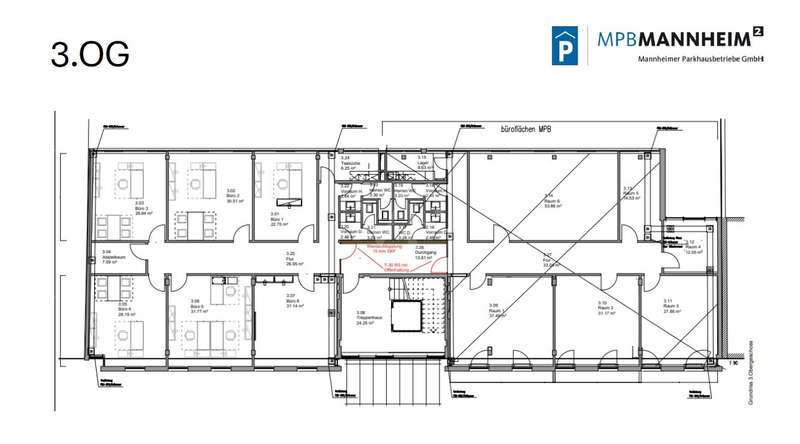 Modern office/service space 1st floor - 3rd floor / C1 Mannheim An attractive office space on the 1st floor - 3rd floor of a well-kept commercial building in the Mannheim squares (C1) is available to let. The space is easily accessible by elevator or staircase and is therefore also very suitable for client, customer, employee or public-oriented uses. The unit will be vacant on 01.01.2026. The basic structure allows both a classic office layout (individual/team offices) and open-plan work zones. Thanks to its central city center location, the space is not only suitable for consulting, sales, agencies or administration, but also for co-working, practice/therapy or training/seminar concepts - in each case by arrangement. **Parking** Garage parking spaces are provided by the landlord for rent - a clear advantage over many city center spaces. **Location** C1: excellent Mannheim city location: short distances to Planken, town hall, restaurants, banks and public transport. Ideal for companies that value accessibility, visibility and a good environment for employees.