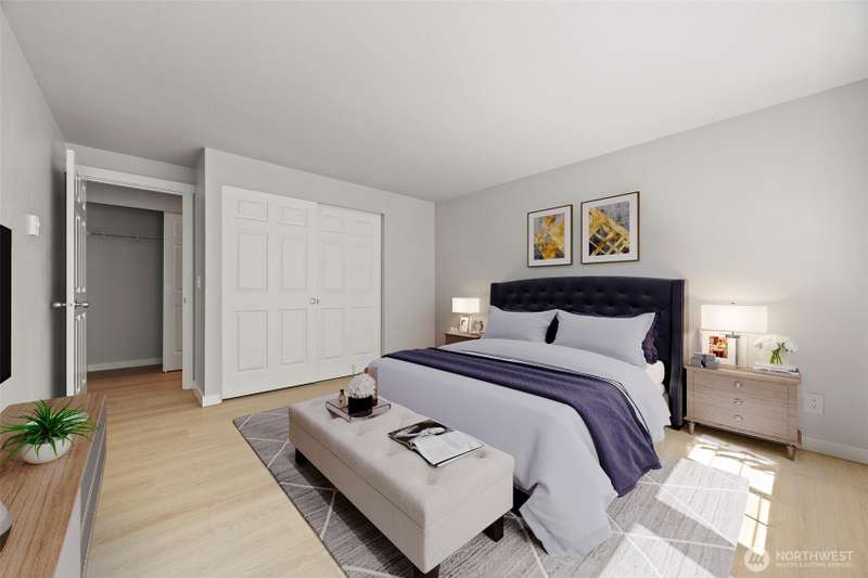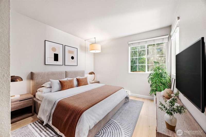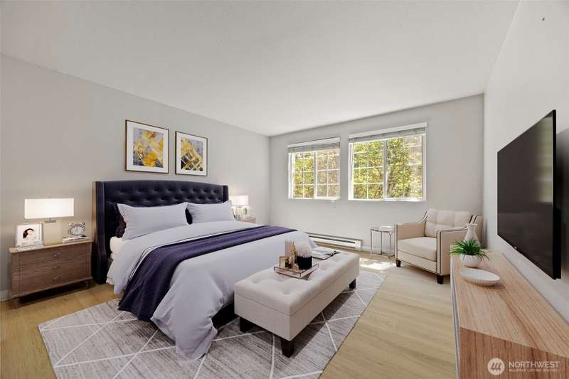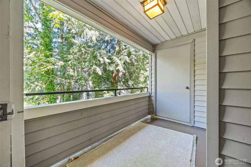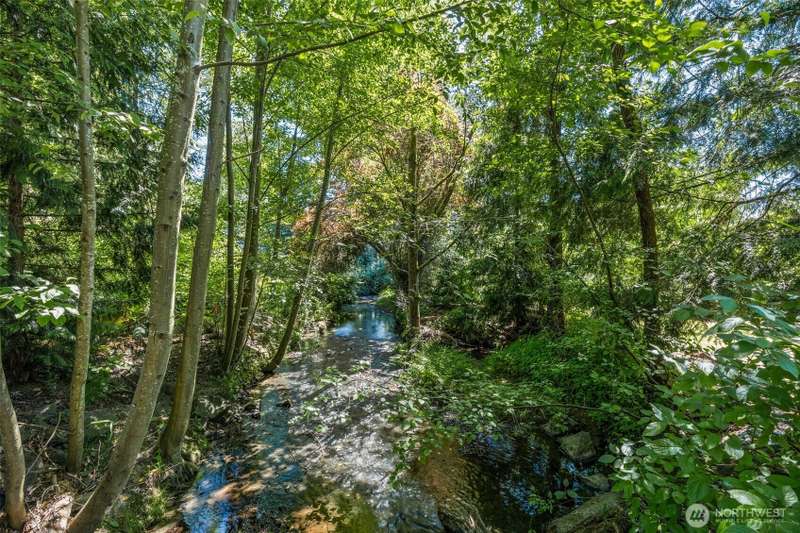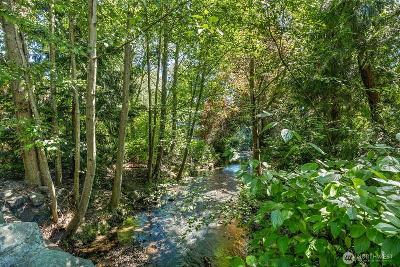 Tucked quietly beside Juanita Creek, this rare end-unit condo offers a peaceful, tree-lined setting with ultimate privacy. Step inside to brand-new luxury vinyl plank flooring that brings a fresh, elevated feel. The open layout features a cozy wood-burning fireplace, defined dining area, and a kitchen with slab granite counters, stainless steel appliances, and plenty of storage. Two spacious bedrooms share a full bath with granite counters and tile flooring. Full-size in-unit laundry and a storage closet off the private deck add convenience. Enjoy the community pool, spa, clubhouse, and gym—just minutes from parks, beaches, dining, Totem Lake Village, and downtown Kirkland. No rental cap!