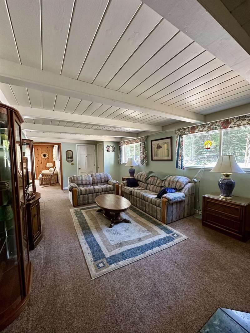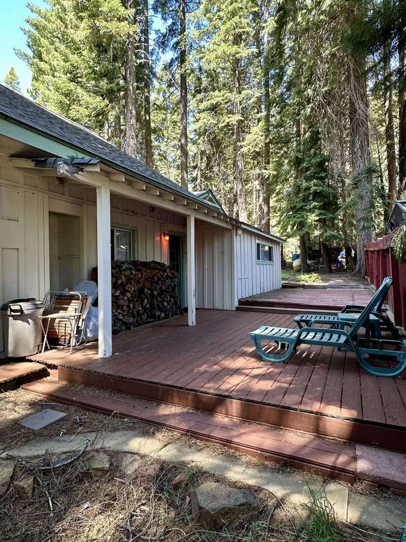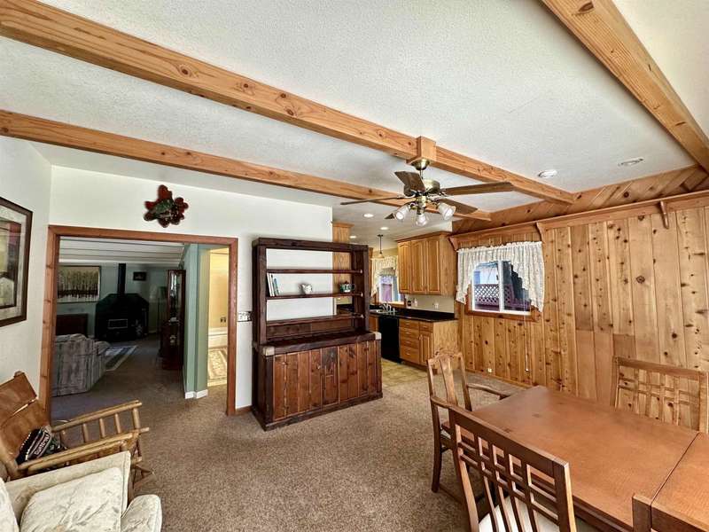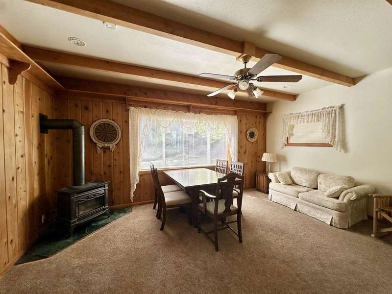 This charming mountain retreat is nestled in the heart of Peninsula Village and offers a peek-a-boo view of the lake just across the street, along with convenient access to all local amenities?including a market, coffee shop, restaurants, marina, and golf course. Set on a spacious lot surrounded by mature trees, this 2 bedroom, 2 bathroom home features a large, partially finished upper level with a pull-down staircase. This bonus space presents a great opportunity to add a third bedroom or a generous family/rec room. The updated kitchen opens to a large dining area that can also serve as a second living room or family space, perfect for entertaining. Stay cozy year-round with both a propane stove and a wood-burning stove. The expansive garage includes tall bay doors to accommodate boats, recreational gear, and vehicles, and also features a sizable attached workshop or storage room. A newer asphalt driveway adds convenience and curb appeal. The large lot offers ample room for future expansion or outdoor enhancements, making it an ideal setting for a true mountain getaway. Most furnishings are included, so this home is ready for immediate summer fun!