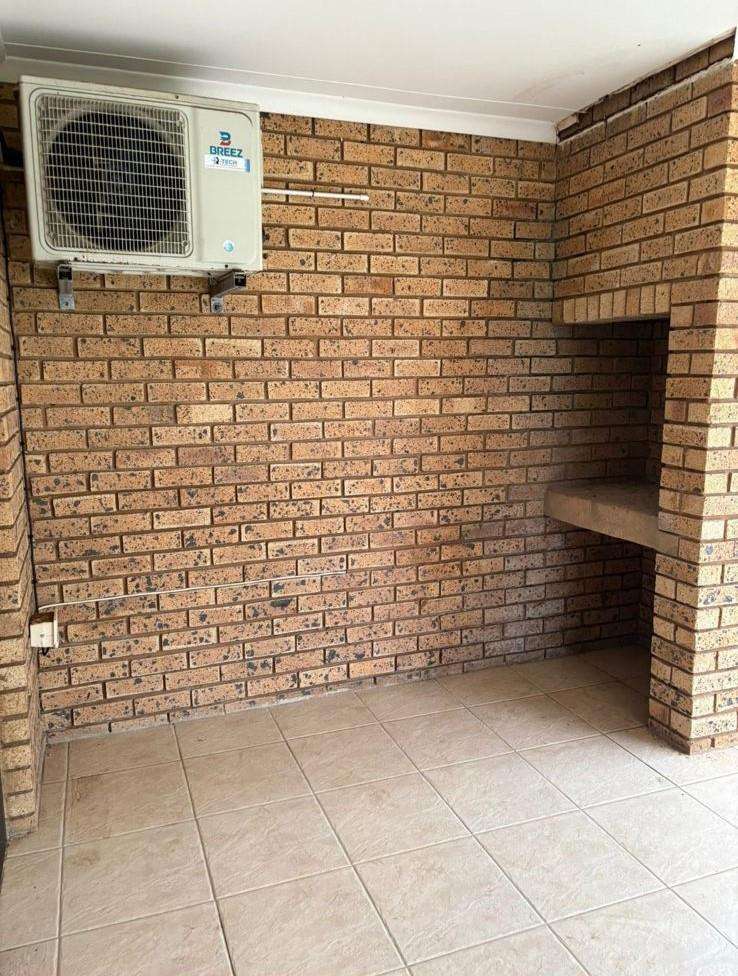 This stunning unit consists of: - 3 Spacious bedrooms with built-in cupboards - Main bedroom boasts air conditioning, ceiling fan, and en-suite bathroom - 1 additional family bathroom with shower & Bath - Large office space with built-in cupboards - Open-plan lounge, kitchen, and dining area - Scullery for added convenience - Semi-enclosed patio with built-in braai - Double garage for ample parking - Spacious garden with added convenience of having the garden service included - Security features: - Alarm system & Sensors installed (Monthly fee for Tenant's account should you sign up for armed response) - Unit will be painted and cleaned before occupation - Optional: DSTV installation available at cost of the Tenant Note: 2 small dogs as per Body Corp Rules are allowed!