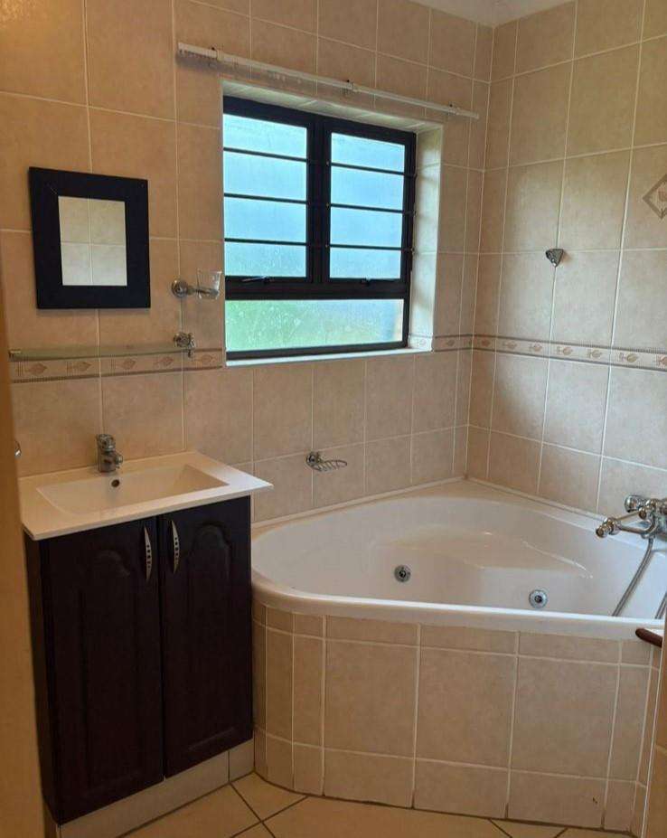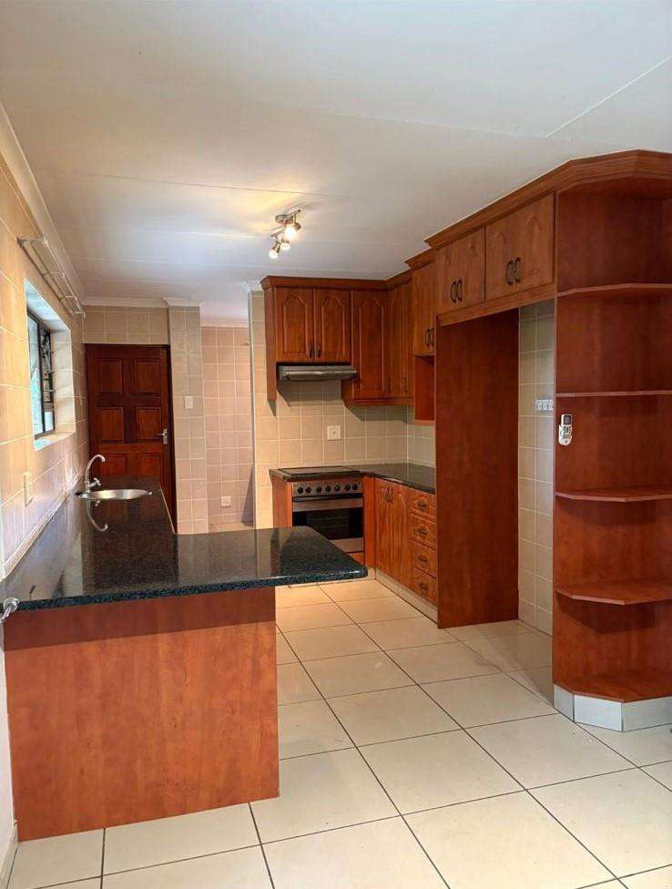 This stunning unit consists of: - 3 Spacious bedrooms with built-in cupboards - Main bedroom boasts air conditioning, ceiling fan, and en-suite bathroom - 1 additional family bathroom with shower & Bath - Large office space with built-in cupboards - Open-plan lounge, kitchen, and dining area - Scullery for added convenience - Semi-enclosed patio with built-in braai - Double garage for ample parking - Spacious garden with added convenience of having the garden service included - Security features: - Alarm system & Sensors installed (Monthly fee for Tenant's account should you sign up for armed response) - Unit will be painted and cleaned before occupation - Optional: DSTV installation available at cost of the Tenant Note: Unfortunately, pets are not allowed due to body corporate rules.