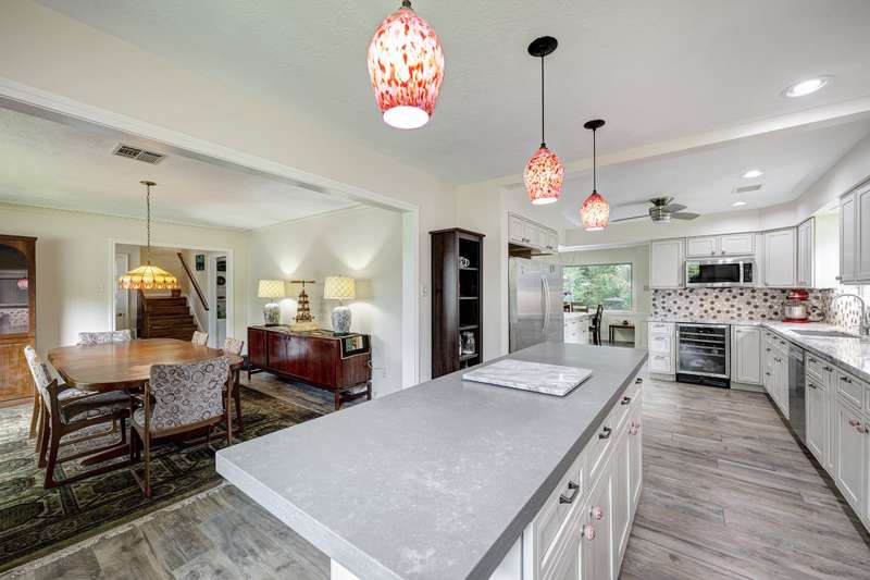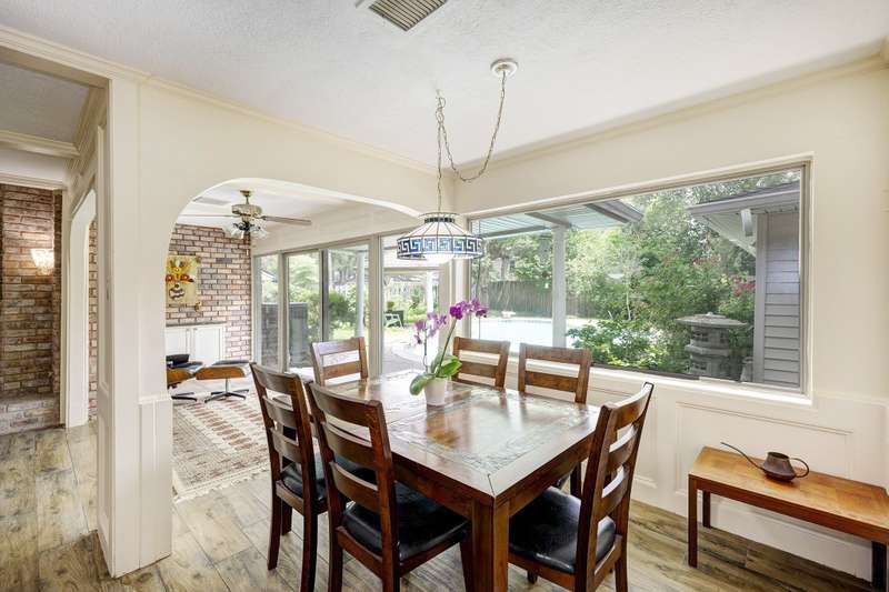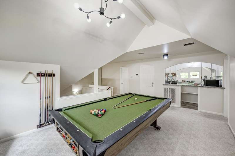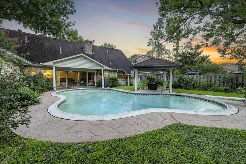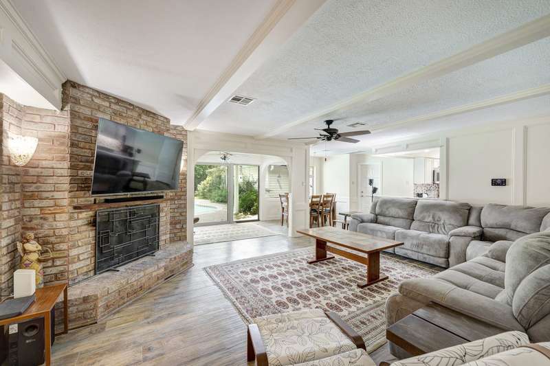 Charming English-style home on an oversized corner lot! First-floor primary suite makes it perfect for every stage of life. You’ll love the expanded island kitchen that was remodeled in 2019 and features quartz & quartzite counters, 48” range, wine fridge, stainless appliances! The kitchen flows into the breakfast room & sunroom with serene views of the freeform pool. Two covered patios & lush landscaping complete the backyard oasis! The formal dining room enjoys a large picture window overlooking the front yard & the spacious family room enjoys the comfort of a fireplace. Upstairs, the gameroom boasts vaulted ceiling, wet bar & kitchenette (updated in 2020). More updates: bathrooms (2020), double-pane windows (2023), AC (2023), & replaced cast iron plumbing (2024) for peace of mind. Don’t miss the three-car garage & wide driveway for extra parking. Schedule an appointment today to tour this beautifully updated home with space, style, & smart upgrades throughout! All info per Seller.
