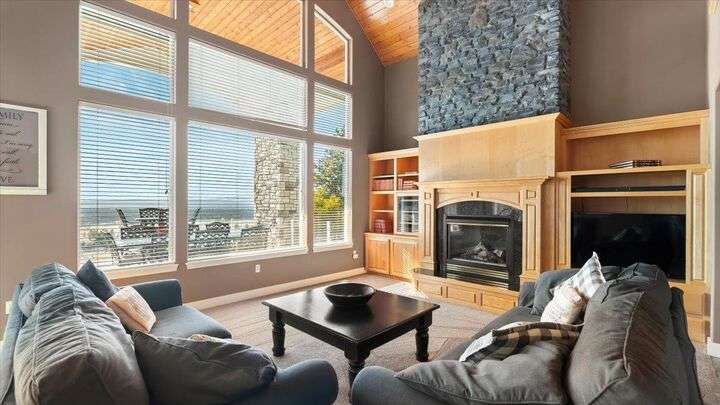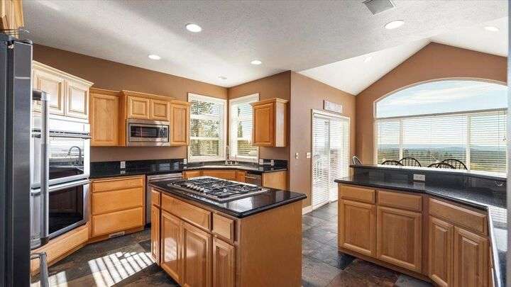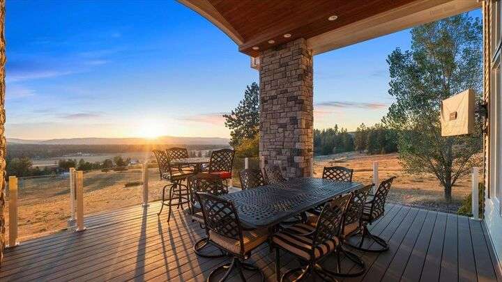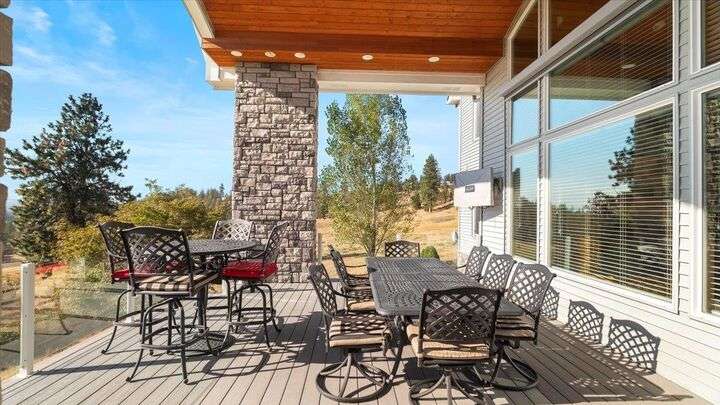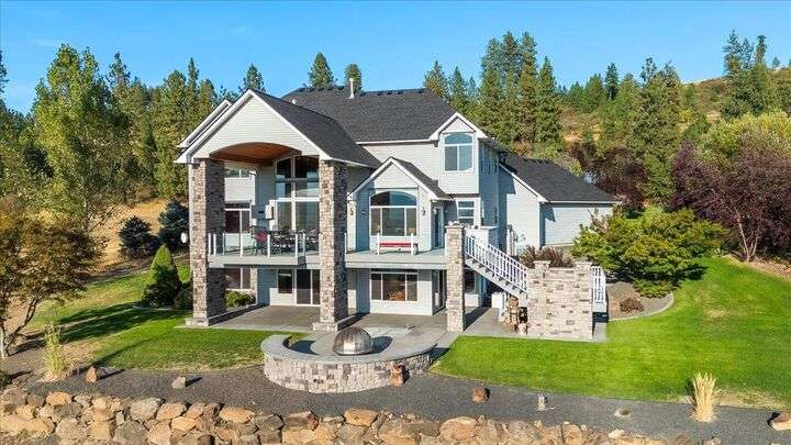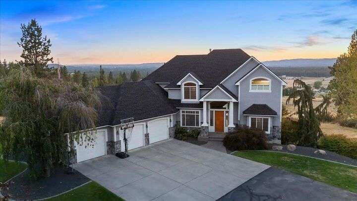 Privacy + unsurpassed sunset views await from this one-owner custom 2-story situated on 10 beautiful acres on coveted Greenbluff. Fully finished + lovingly maintained, the home features soaring ceilings, a beautiful open floor plan, spacious rooms + abundant natural light. Updates include a brand-new lifetime roof, new carpet + tile flooring, new windows (2015), a whole-house Generac generator (2019), two new water heaters (2019), all new appliances (2019 + 2023), and Kinetico water filtration (2021). Designed with entertaining in mind, the lower level offers a large recreation room, fully equipped wet-bar + walk-out access to an expansive patio with custom wood-burning fire pit. A fully finished 3-car attached garage offers extra space for storage, and the 40x50 dream shop is heated + plumbed for a toilet + sink. Located just far enough away to provide a private, peaceful sanctuary, yet just minutes from shopping, schools, restaurants + other amenities.