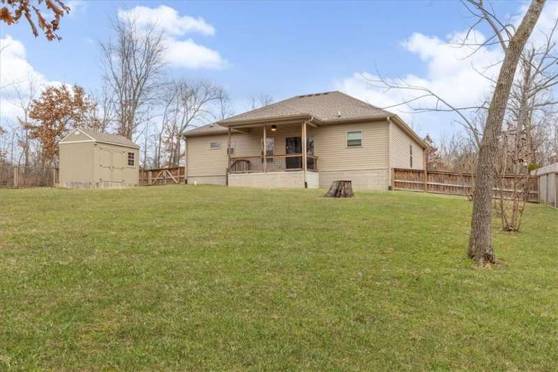 WOW !!! Home Beautiful !!! You'll love all the extras the seller added. Large Fenced backyard yard, 120 sq ft storage building. Open floor plan with high ceilings! It's better than new... all the hard work is done! The kitchen is so functional with center island, granite countertops, high ceiling! High ceilings through out You will enjoy the bathrooms! Primary bedroom has its own Primary bath, tile floors granite countertops. Have fun sitting on the convered back porch watching wildlife and birds. Great yard for lots of gatherings! Have a cookout, play all sorts of outdoor games. Level lot with just a slight slope, fenced backyard, cul-de-sac street, split bedroom plan, high ceilings, granite countertops, covered porch & back patio, 10x12 shed. Refrigerator, washer and dryer stay! Spacious home w/ deluxe vinyl floors! 3 bedrooms with a2 bedroom septic. Close to Lake Loch Lomond, Highlands Clubhouse with 18 hole golf course, Branchwood Recreation Center with workout room, indoor swimming, activities, walking Trail