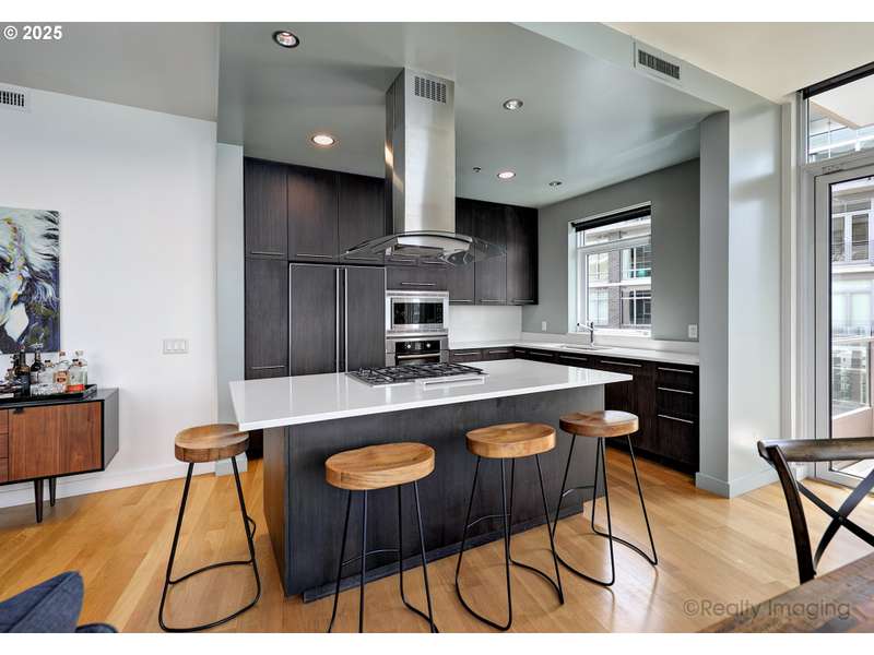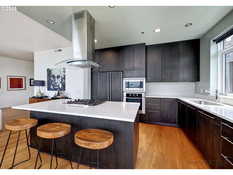 OPEN HOUSES 10/25 & 10/26 12:00 - 2:00 Best Upper Level Corner Condo Value - Amazing 13th Floor Views of Mount Hood, Mount St Helens, River, City & Park Views - HUGE apx 253' Wrap Around Balcony with access from Dining Room & Primary Bedroom - 2 Bedrooms, 2 Baths, 1523SF. Large Inviting Entry/Art Corridor - Spacious View Living Room - View Dining Room - Gourmet View Kitchen features Cook Island with 4 Burner Gas Range, Bosch Appliances, New LG Microwave, Silestone Quartz Counters - Elegant Primary View Suite with New Walk-in Shower Tile/Enclosure down to and including pan, hardware & glass (2022), Custom Closet Built-ins - Large Second Bedroom - Separate Utility Room. Views from most rooms - Floor to Ceiling Windows with 95% Opaque Shades - Hardwoods, High Ceilings, Built-ins - Community Room & Fitness Center - Deeded Parking and Full Height Storage - Refrigerator, Washer & Dryer included. Next to dog friendly 3 Acre Fields Park. Portland Streetcar, Markets, Restaurants, Galleries, Theater , 2 Parks (The Fields & Tanner Springs) and Ovation Coffee & Tea. A Special Property in a Great Pearl District location. Amazing Views!!