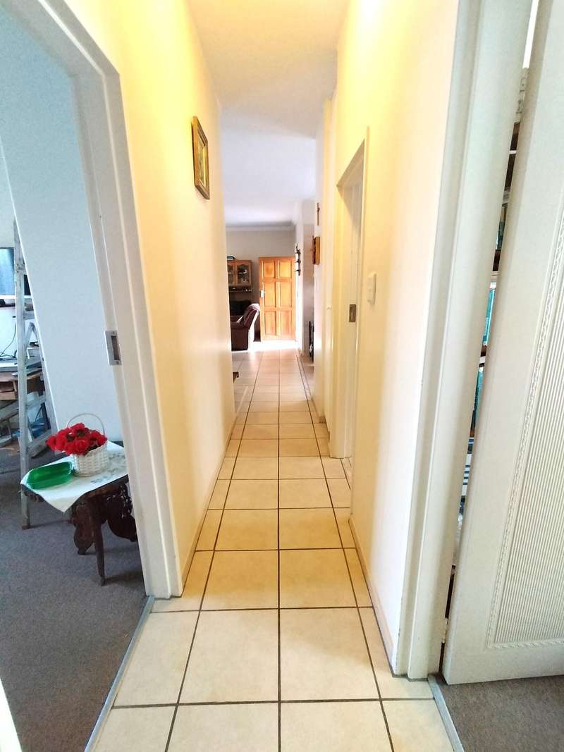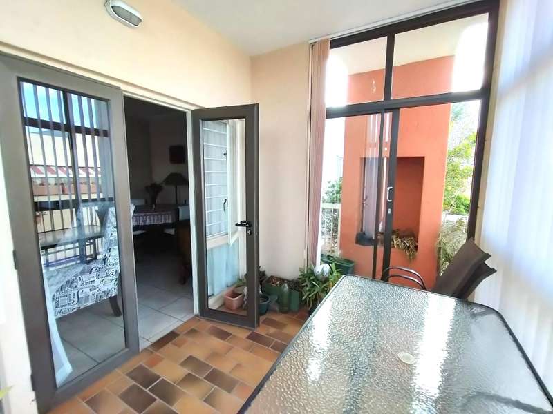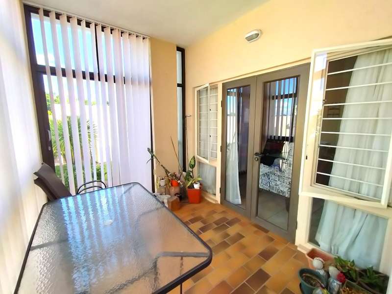 The interior of this unit boasts three generously sized bedrooms with ample cupboard space and plush carpeted floors. The main en-suite bathroom is equipped with a bath, tub, and toilet, while the guest bathroom offers a shower, tub, and toilet. The open-plan design seamlessly connects the well-fitted kitchen?Çöcomplete with a breakfast nook, abundant cupboard space, and provisions for appliances?Çöto the spacious living/dining room. The kitchen features a 4-plate steel hob and under-counter oven, and an adjacent courtyard adds convenience. Additional storage is provided by an extra cupboard in the hallway, serving as a linen cupboard.
