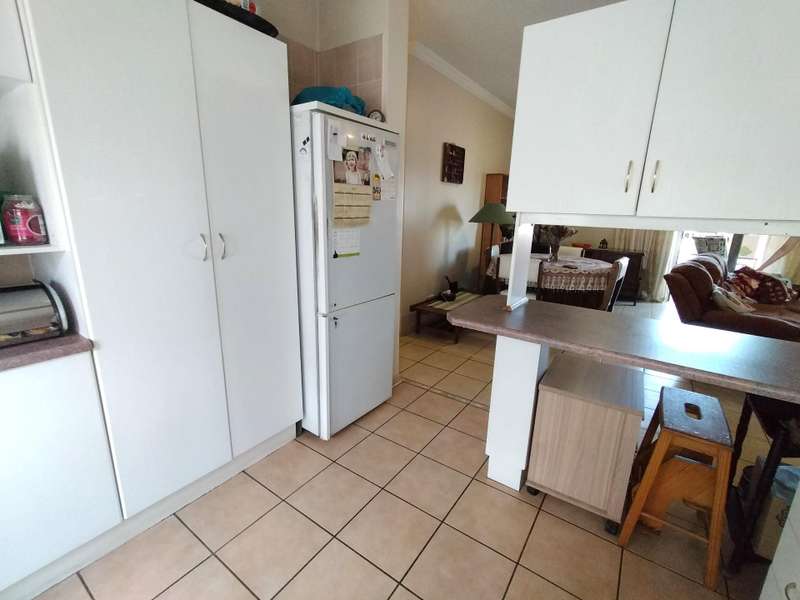 The large open-plan living area extends to the enclosed patio, which includes a built-in braai and provides a delightful view of the meticulously maintained garden. For added convenience, the single automated garage opens directly into the house. Wi-Fi ready points are available, and water and electricity costs are not included in the levies.