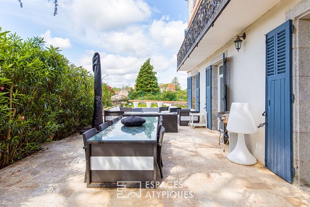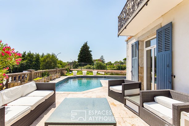 With a surface area of 380 m2 of living space on 3 levels, it offers different possibilities according to the desires and projects of each. From the entrance to the property, the charm operates, with a beautiful intimate French garden, the character of the cut stone walls as well as a hundred-year-old cedar.