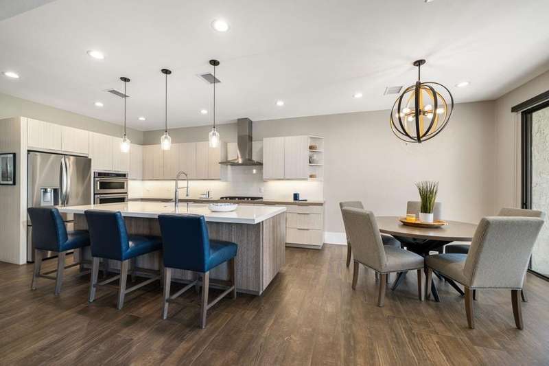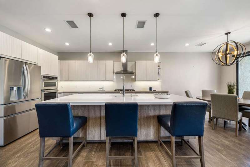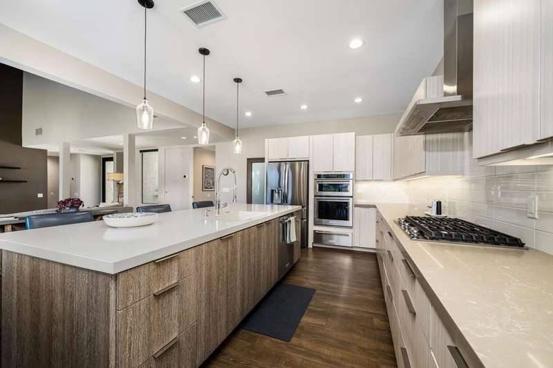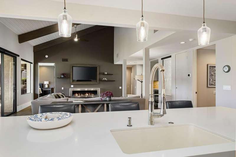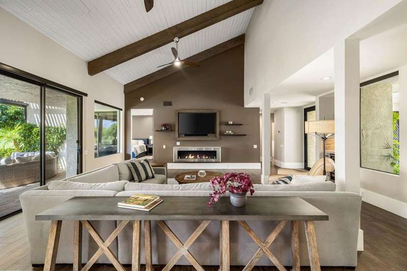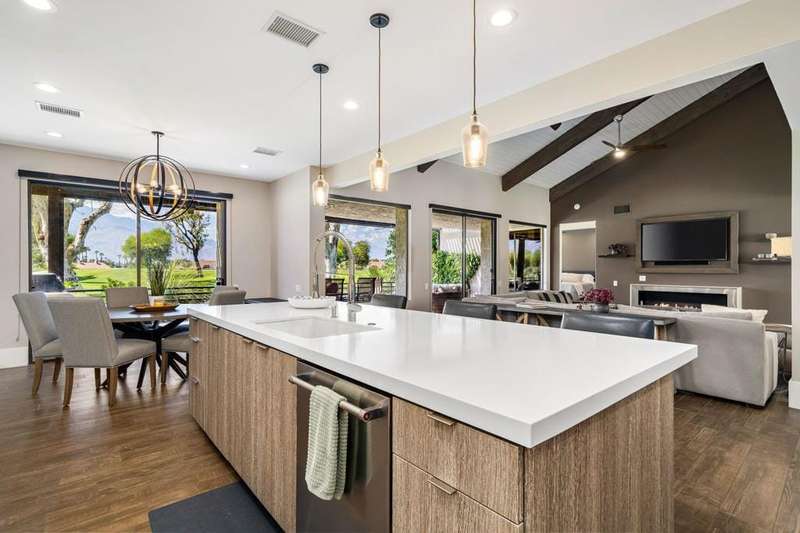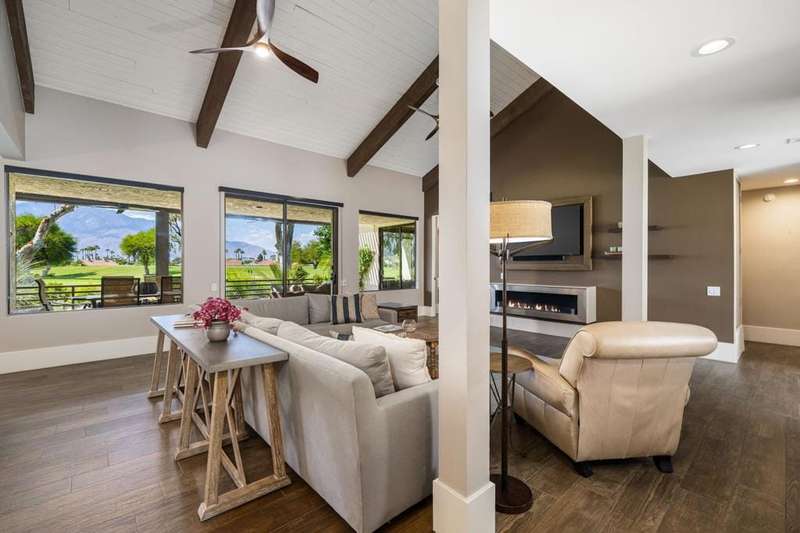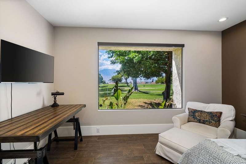 Stylish Contemporary Renovation with Stunning Finishes, Mountain Views across Multiple Fairways of the Tournament Course at Mission Hills Country Club, and a Large Private Courtyard Oasis. Enter the property through a stunning gate to the zen courtyard with custom pavers. Double Glass Doors lead to a dramatic open Great Room with beamed ceilings, fireplace, entertainer's bar with wine refrigeration and walls of glass overlooking stunning mountain views. Gourmet Chef's Kitchen with quartz countertops and island, stainless appliances and white cabinetry opens to the dining area with views of the golf course and mountains and access to the back patio. Primary Suite with Terrace access. a spectacular updated Spa Bath with a large walk-in shower and walk-in closet. Two guest suites each with its own updated bath provide room for family and friends or a den/media room. Back Terrace has covered outdoor living with pavers and exceptional views of the golf course and mountains. Come home to your of the moment contemporary desert oasis in coveted Mission Hills Country Club.
