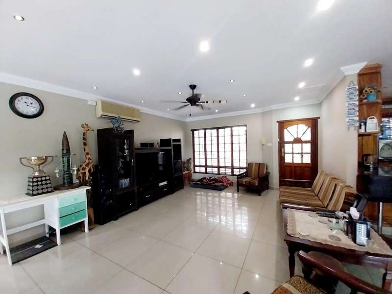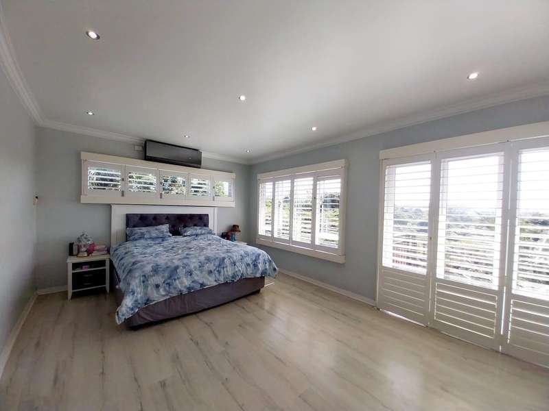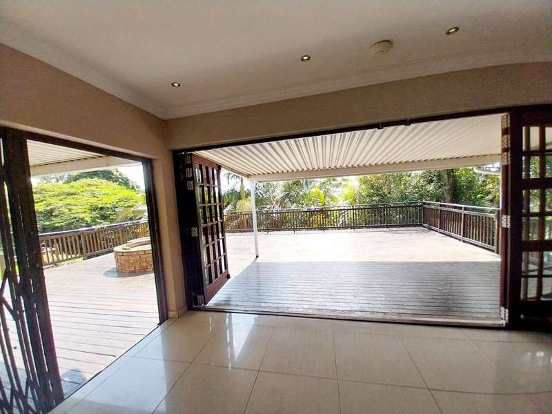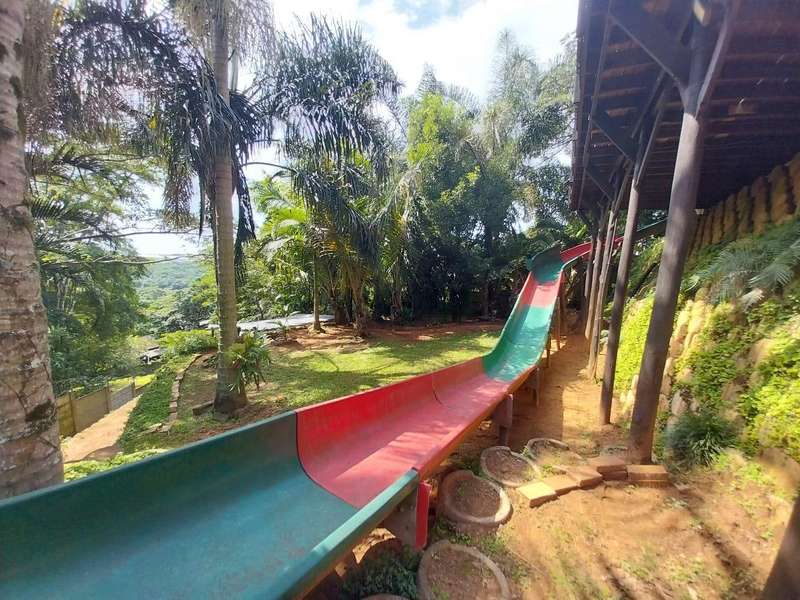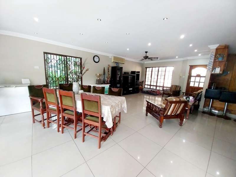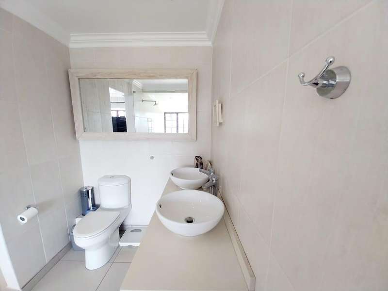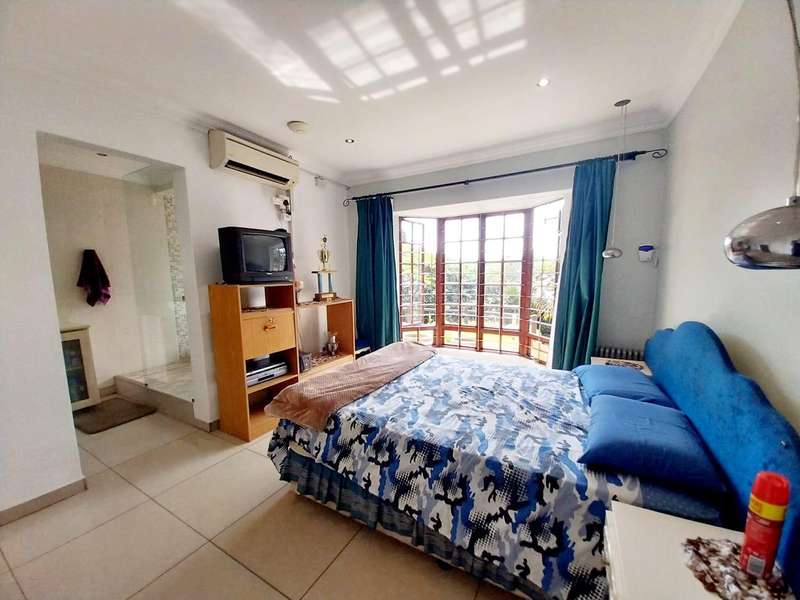 This is the property you have been seeking: a remarkable family home with exceptional entertaining features. Upon entering the home, you will be greeted by a modern open-plan kitchen, featuring attractive wooden cabinetry with black granite countertops, a gas stovetop, and an electric oven. Adjacent to the kitchen is a charming breakfast nook. The kitchen seamlessly flows into an expansive dining room and lounge, making it an ideal space for hosting sophisticated cocktail parties. The impressive wooden patio doors lead directly to a spacious wood deck with complete with a boma, perfect for outdoor gatherings. Ascend the staircase to discover four well-appointed bedrooms and three uniquely styled bathrooms. Each bedroom offers ample space and built-in cupboards, while each modern bathroom showcases its own distinctive design elements. The expansive main bedroom is truly stunning, adorned with elegant white wooden shutters and sleek downlights that create a starry ambiance on the ceiling. To your left, a walk-in closet with drawers and wall-to-wall cupboards offers plentiful storage. Indulge in the luxurious spa bath while enjoying a picturesque view of the gardens. To your right a wooden balcony with a view of the stunning garden. The surrounding garden includes a pool, trampoline, and a wrap-around slide, providing an ideal play area for children. Additionally, the property features two 5000 L Jojo tanks with a filtration system for clean water, integrated directly into the main line of the house. Completing the property is a garden cottage, two garages, and a small office space. Contact me today to arrange a viewing, as this exceptional home is sure to attract interest and may not remain on the market for long.