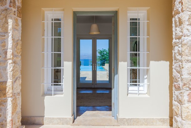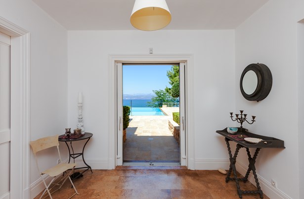 A luxury beachfront villa of 450 square meters is located in Avlida. Slightly above the sea level and only 90 meters from the sea, it opens out a breathtaking view on the Evia island and turquoise blue sea of Evia bay, famous for its quietness and mild water temperatures. This unique property has two floors, with five bedrooms with private bathrooms, a spacious living room, a dining room, a fully equipped kitchen, as well as a 3.800 square meter surrounding private area, featuring a guest house, a parking lot, a basketball and tennis courts as well as a clear-blue water swimming pool facing the sea, that adds to the grace of the exterior space. You can take a break in the shadow of centuries-old olive trees, growing in the adjunct garden. The location of the villa is strategic, being situated in Avlida area, it is only 35-minutes’ drive from the Athens airport, and 15-minutes’ drive from the most luxurious areas, such as Ekali, Psichiko, Kifisia. The area has good infrastructure, with good transport connections, restaurants, offering the freshest seafood in the region, as well as green parks and recreation areas. Features • Bedrooms: five • Living room • Separate dining room • Fully equipped kitchen • 3,800 square meter surrounding private area • Guest House: • Parking Lot: Dedicated parking area • Sports Facilities: Basketball and tennis courts • Swimming Pool