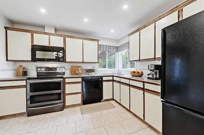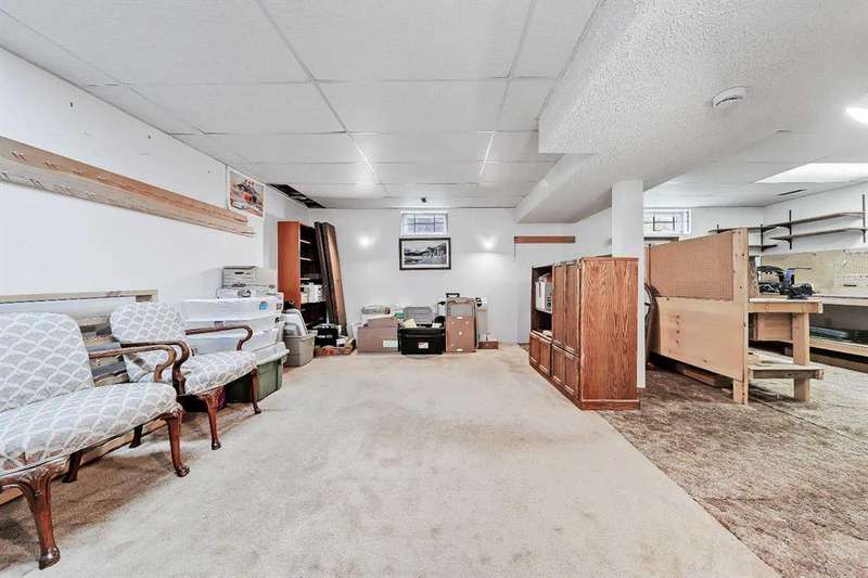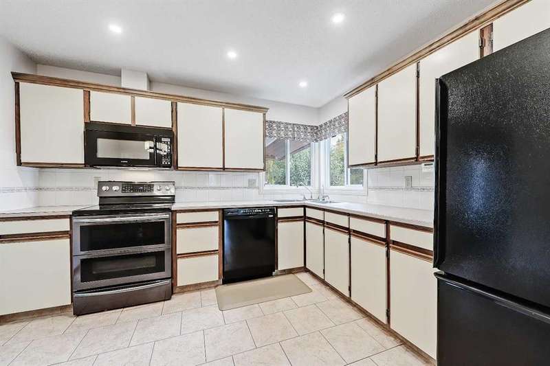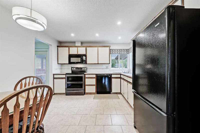 HUGE PIE LOT | QUIET CUL-DE-SAC | CENTRAL A/C | HEATED DOUBLE GARAGE | WALKABLE TO FISH CREEK! This lovely fully finished 4 level split home offers numerous upgrades and an absolutely massive 8,320 sqft pie-shaped lot at the end of a quiet cul-de-sac. The property provides a very functional floor plan with numerous living spaces and is close proximity to an abundance of community amenities including parks, playgrounds, sports courts and fields, schools, shopping, restaurants, MAX Yellow/BRT Transit, Canyon Meadows Golf Course and the natural beauty of Fish Creek Provincial Park. The main level of this home blends natural light, open space and everyday functionality. A spacious front entry opens to the living room, where large picture windows fill the space with sunshine, creating a bright and welcoming atmosphere for relaxing and entertaining. Just off the living room, the dining area offers plenty of room for family meals and connects easily to the back deck for seamless indoor-outdoor flow. The kitchen has ample cupboard and cabinet space, upgraded appliances, a drinking water tap and space for a cozy dinette, perfect for everyday breakfasts. While move-in ready, the space also presents excellent potential for a modern refresh. The above-grade lower level extends the living space with a warm family room anchored by a stone-faced gas fireplace and is ideal for cozy evenings or casual get-togethers. A bright flex room provides versatility as a home office, hobby space or guest room, while a dedicated laundry area, a convenient half bath and a practical back entry with storage add everyday convenience and easy access to the yard and deck. Upstairs, family living takes centre stage with 3 comfortable bedrooms and 2 full baths. The spacious primary suite features a 3-piece ensuite and a large closet, while the 2 additional bedrooms offer flexibility for kids, extended family or guests. The main 4-piece bathroom includes upgraded sink and tub fixtures and a handy linen closet. The basement provides abundant flexible space with a large open area perfect for a rec room, home gym or media space, along with a workshop featuring built-in benches and shelving. The crawl space is a standout feature, offering higher ceilings than typical for easy access, plus extensive storage as well as cold room areas, a laundry sink and an additional refrigerator. Outdoors, this one-of-a-kind massive pie lot is as functional as it is inviting. A generous covered deck sets the stage for barbecues and summer evenings, while the huge garden, complete with a self-watering system, rain barrels, compost bins and fruit trees, makes sustainability simple. A storage shed and plenty of green space round out this exceptional yard. The list of additional features includes upgraded siding, shingles, windows and central AC, rubber paved front driveway and sidewalk, oversized double garage with a Calcana gas heater, built-in vacuum system, window coverings and more. Welcome Home.