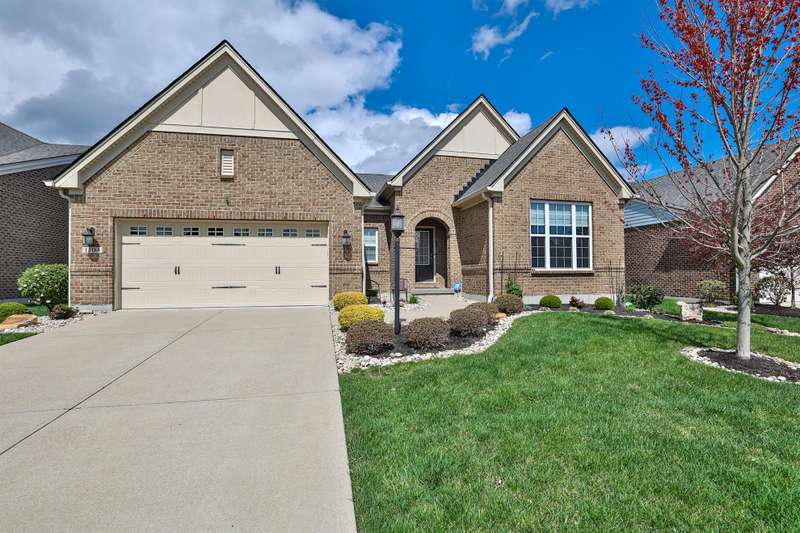 Brick ranch patio home in Triple Crown- Saratoga Springs. Drees ''Naples'' which is the largest patio home floor plan. Gourmet kitchen with a granite island, upgraded SS appliances and subway tile backsplash. Open floor plan, Real Hardwood floors (NOT vinyl planks), Stone gas fireplace and High ceilings. Covered patio with additional electric, stone fireplace, Office with French Doors. Spacious primary bedroom with a huge walk in closet and double raised vanities, garden tub and double tiled shower. The finished lower level boasts a family room, game area, workout room with sauna and barn door. Lower level also has a 3rd bedroom, full bath and a wet bar kitchenette. Solar roller shades throughout, garage floor coating, Extra large storage area and many upgrades throughout.