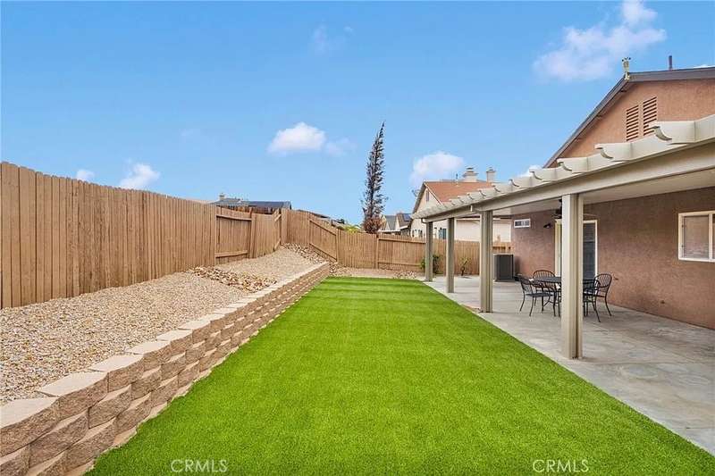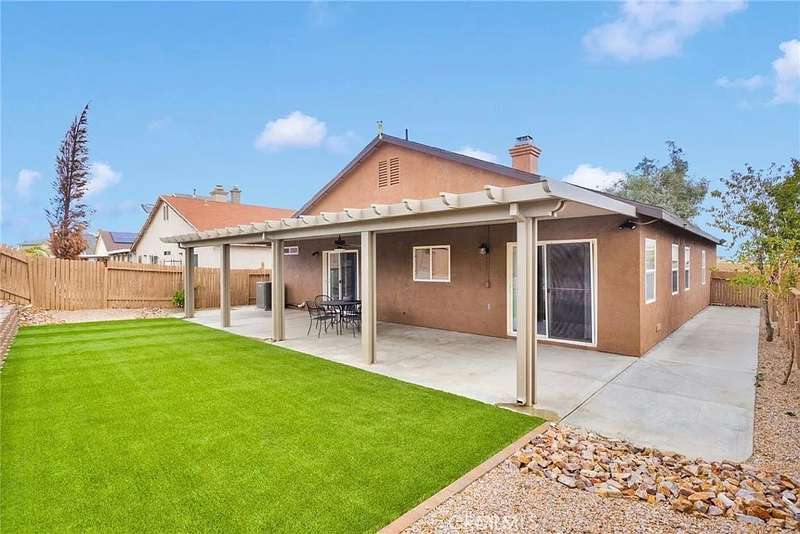 Step into this meticulously upgraded and remodeled home, built in 2002 and boasting 1736 square feet of modern living space on a generous 5628 square foot lot. This isn't just a house; it's a completely transformed interior and exterior with three spacious bedrooms, two bathrooms, and a versatile office or den, perfect for working remotely or creative pursuits. The indoor laundry room comes complete with a washer and dryer, included for your convenience. Enjoy tile flooring in the kitchen, bathrooms and laundry room. Complemented by plush, new carpet and padding throughout the rest of the home. The interior has been Professionally painted (Behr/Even Better Beige) creating a bright and inviting atmosphere. Comfort is assured with a newer HVAC system and Water Heater, featuring a Google Nest thermostat, ensuring optimal climate control. The gourmet kitchen is a chef's delight, featuring a refrigerator, gas stove, microwave and a new dishwasher included in the sale. Bright white tile countertops and ample storage space make meal preparation and entertaining a breeze. A double-pane sliding window leads to the inviting covered patio, extending your living space outdoors. The bathrooms boast new toilets and fixtures, adding a touch of modern elegance. New Professionally installed ceiling fans throughout the interior enhance comfort and energy efficiency. The Curb appeal is undeniable, with professionally landscaped front and back yards, including a retaining wall and a recently repaired, reinforced and painted wood fence, ensuring privacy and beauty. The exterior stucco and eaves have been professionally painted. Every detail has been carefully considered in this exceptional renovation, designed for comfort, style, and effortless living. Schedule your private tour today.