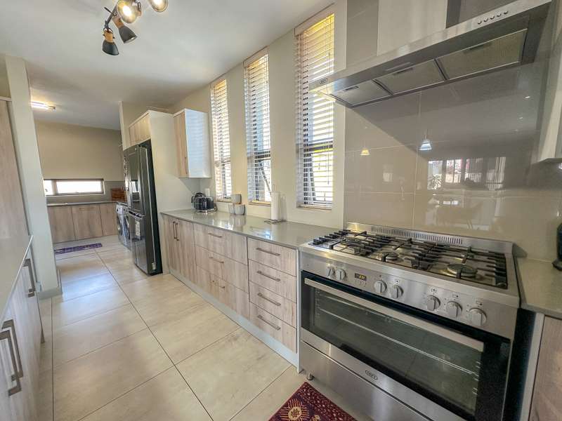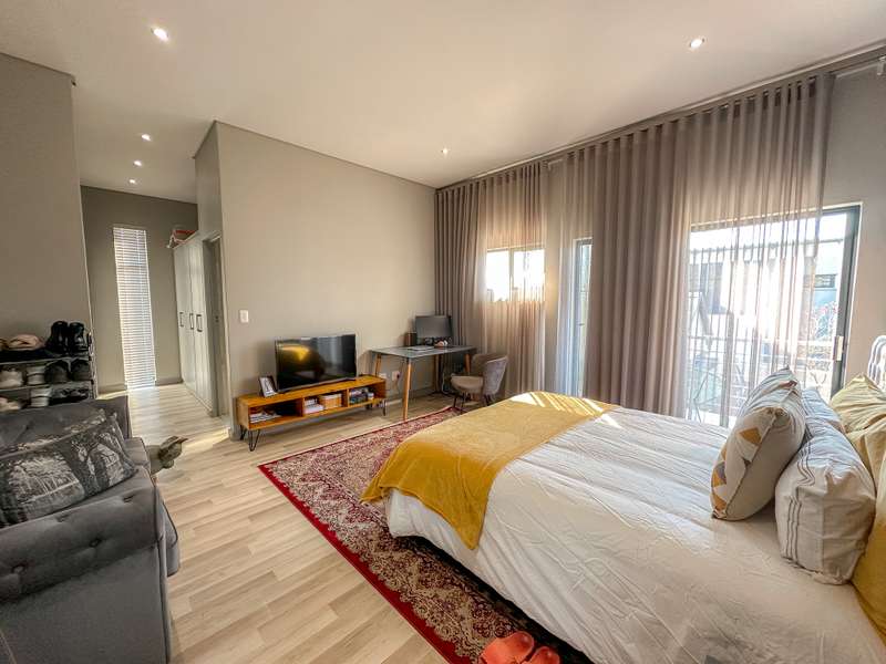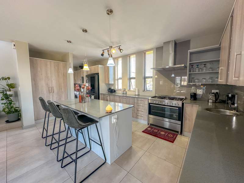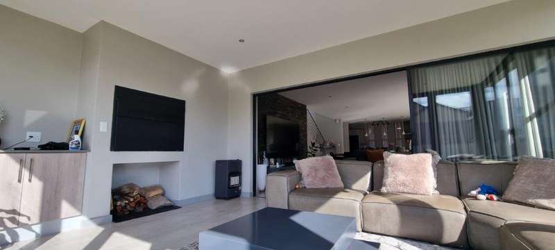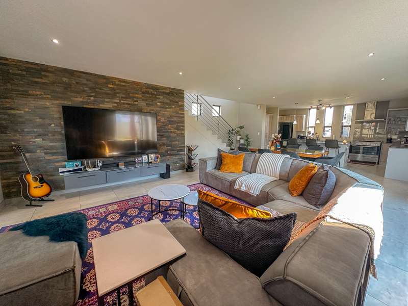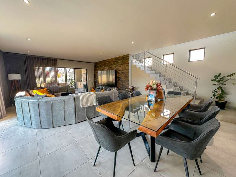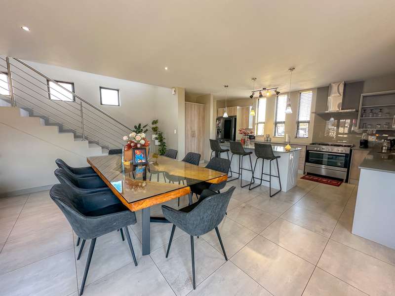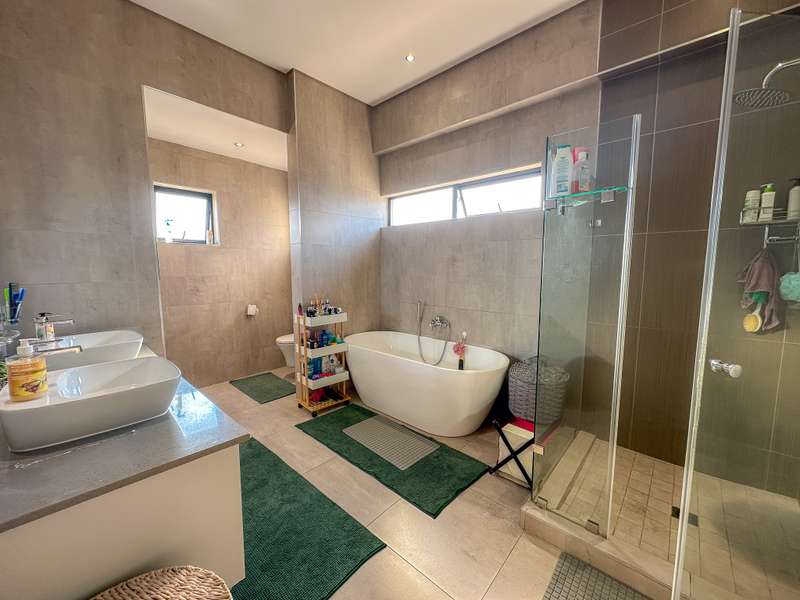 Modern Elegance in Midstream Meadows – Double Storey Delight in a Quiet Cul-de-Sac Welcome to this stunning double-storey home, perfectly positioned in a quiet cul-de-sac within sought-after Midstream Meadows Estate. This modern residence offers the ideal blend of space, comfort, and functionality for the whole family. Upon arrival, you’re welcomed by a spacious driveway with ample guest parking, a side gate for trailers, and three automated garages. Step inside and discover a well-appointed ground floor featuring a guest bedroom with sliding doors that open to the garden, accompanied by a stylish guest bathroom. The heart of the home is the open-plan living area, seamlessly connecting a sleek kitchen with a centre island and private scullery to the dining and lounge areas. The enclosed patio creates the perfect all-weather entertainment space and opens up to a generous garden with a sparkling swimming pool—ideal for family gatherings and summer fun. Additional features include a domestic room with its own bathroom and a separate storage room—perfect for gardening tools or extra household items. Upstairs, you’ll find two family bedrooms, each with its own en-suite bathroom, and a spacious main bedroom featuring a luxurious en-suite bathroom and ample cupboard space. Don’t miss out on the opportunity to own this exceptional property in the heart of Midstream Meadows. **Rates & Levies - Estimated**