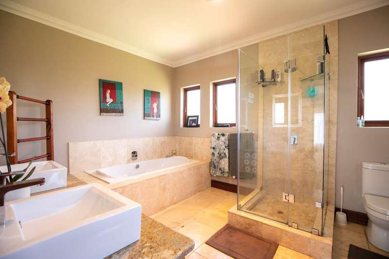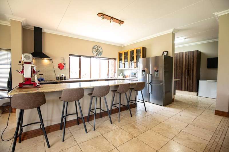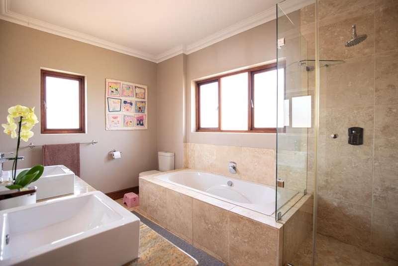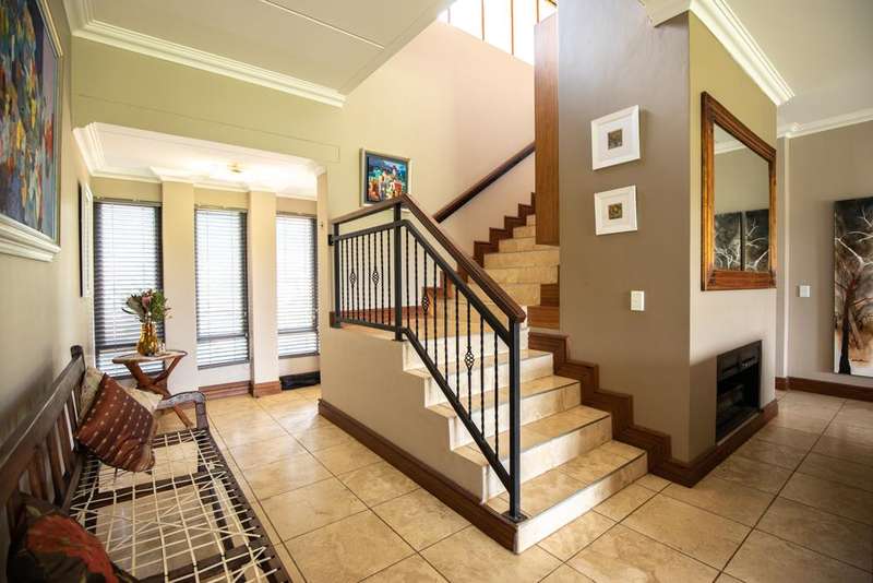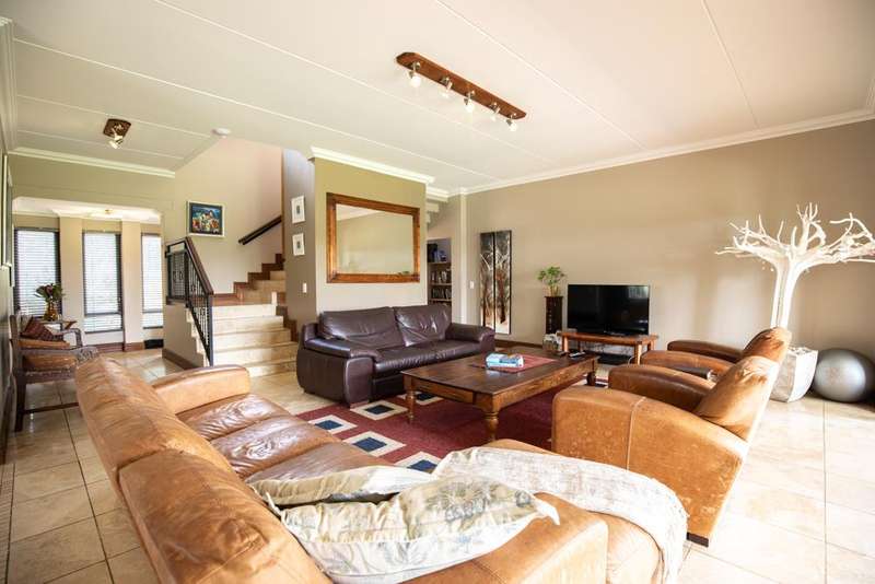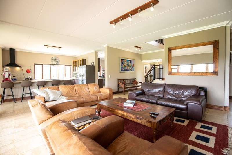 LOCATION - Amazing Views Over The Greenbelt This spacious home offers stunning, uninterrupted views of surrounding natural green belt. The house itself boasts a modern yet warm design, with large windows that invite natural light and frame the breathtaking scenery. Inside, the open-plan living areas are expansive, featuring elegant finishes that blend comfort with luxury. The kitchen is a chef's dream with a massive island for family gatherings. Never a shortage of workspace! The bedrooms are generously sizes, each fitted with an air con and sliding door to walk out on to a balcony with stunning views. Outside the patio is perfect for all fresco dining or simply unwinding while soaking in the serene views. The large lawn provides the ideal spot for children to play in a secure environment. This family home offers a peaceful sanctuary within a stunning natural setting. THE PROPERTY FEATURES: - Big stand 1099sqm bordering the scenic greenbelt park - Large private and established garden - big enough to fit a pool - Spacious and open living areas with abundance natural light forms the heart of the home - Living areas walk out on the patio through stack doors - very private - Wood fireplace in living area - The modern open plan kitchen with exceedingly large island, gas stove and abundant cupboards has lots of practical working space - Separate scullery with build-in cupboards accommodates 3 appliances - Walk-in pantry offers plenty of storage - 4 Large bedrooms of which 3 bedrooms are upstairs each with own air con and balcony. The en-suit guest bedroom is found downstairs and walks out on garden - Stunning views from all balconies - 3 Modern spacious bathrooms of which 2 are en-suite (including main bedroom) - Guest toilet downstairs with storage room under staircase - Double garage with visitor parking for 6 cars EXTRA FEATURES INCLUDE - North facing - Sought-after location next to greenbelt park - Borehole with 10 000 Litre per hour - 1.1KVA Pump which delivers 2000 litre per hour - 2700 litre reserve tank LOMBARDY ESTATE OFFERS: - Country Lifestyle Estate with top 24 hour security - Jogging trails throughout the estate - Mountain Bike track around the estate - Clubhouse with Tennis/Basketball courts