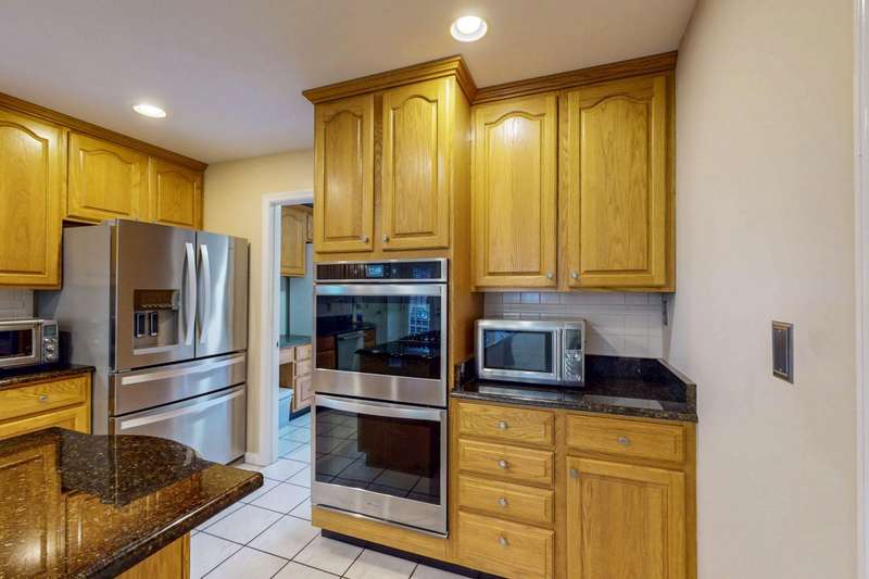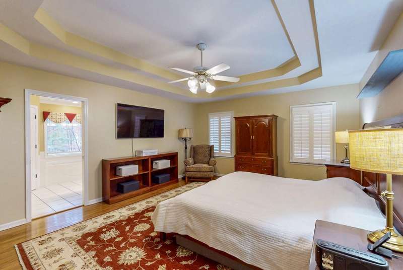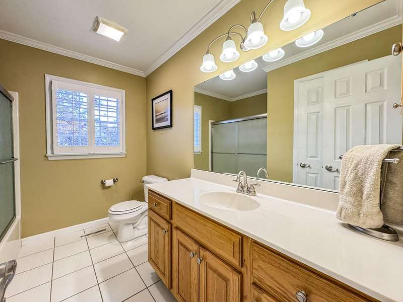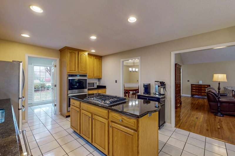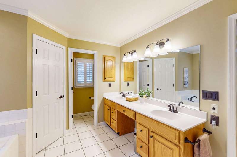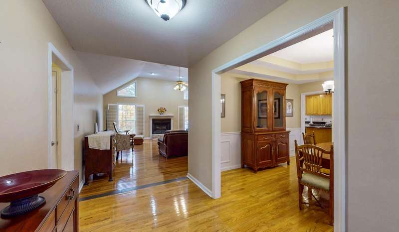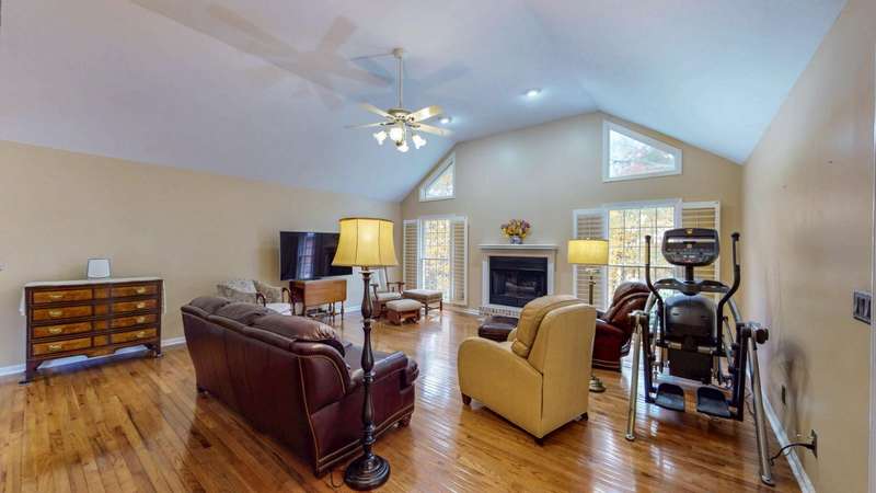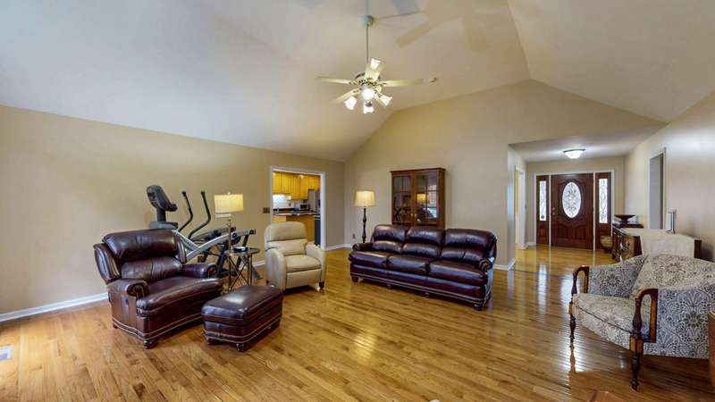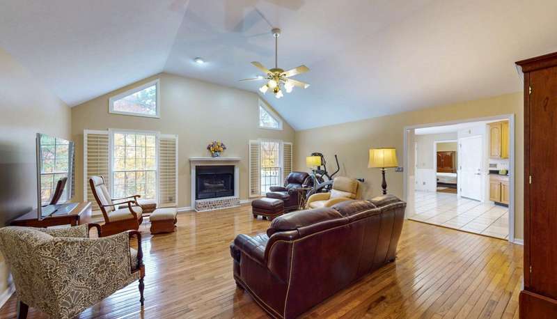 Immaculate and move in ready home has a front porch just waiting for you. All rooms are on the main level and have easy access from the garage. Natural light and gleaming new hardwoods invite you into the spacious living area with gas fireplace, bedrooms and formal dining room. The kitchen and bathroom floors are tile. Plantation shutters dress the windows. The large kitchen has an abundance of cabinets, granite countertops, natural gas cooktop, and a double oven. The breakfast area leads out to a wonderful private deck and into your shaded oasis. The owner's suite has a jetted tub and walk-in shower with two spacious closets. This split-bedroom floor plan has two more bedrooms on the main level. Downstairs you will find a great rec room, the 3rd bathroom, with additional room for multiple uses. The third garage is downstairs and makes a super workshop. The backyard is a lush retreat, and the front yard is beautifully manicured and has a sprinkler system front and back. The home also has a parking spot for an RV with electrical, water, and septic hook-ups. There is plenty of storage in this home including under the deck, floored attic space and a large crawlspace under the garage.Recent upgrades include a new roof, new HVAC system and new insulated oversized garage door. The yard is professionally designed and maintained with lots of flowers, specimen trees and other plantings.High speed internet is available. Heat and hot water are natural gas. Underground utilities.This is a very family-friendly development that has many walkers, runners taking advantage of the scenic streets.There is no HOA, but there is a voluntary request of $50 per year to support the public features.