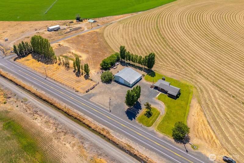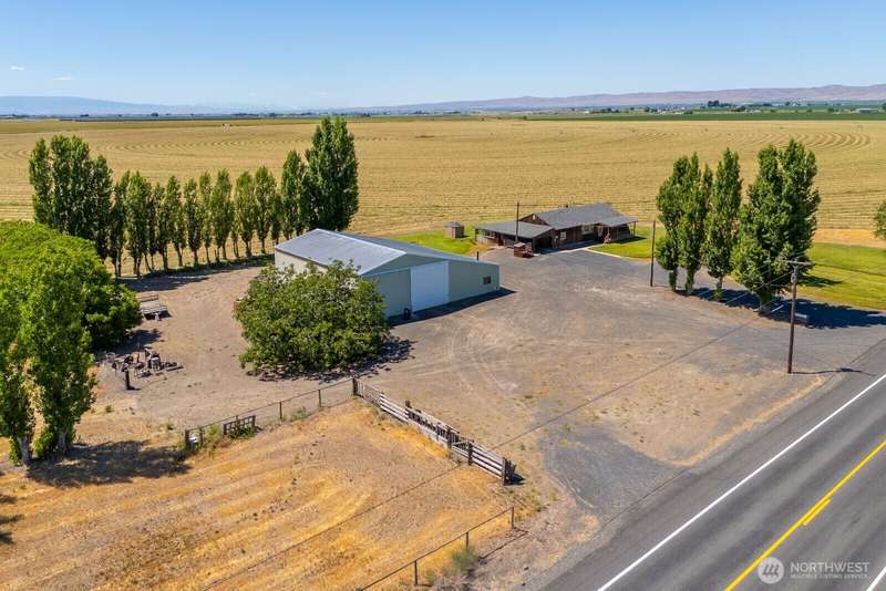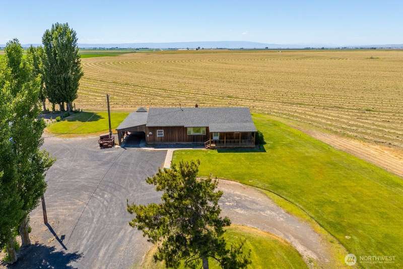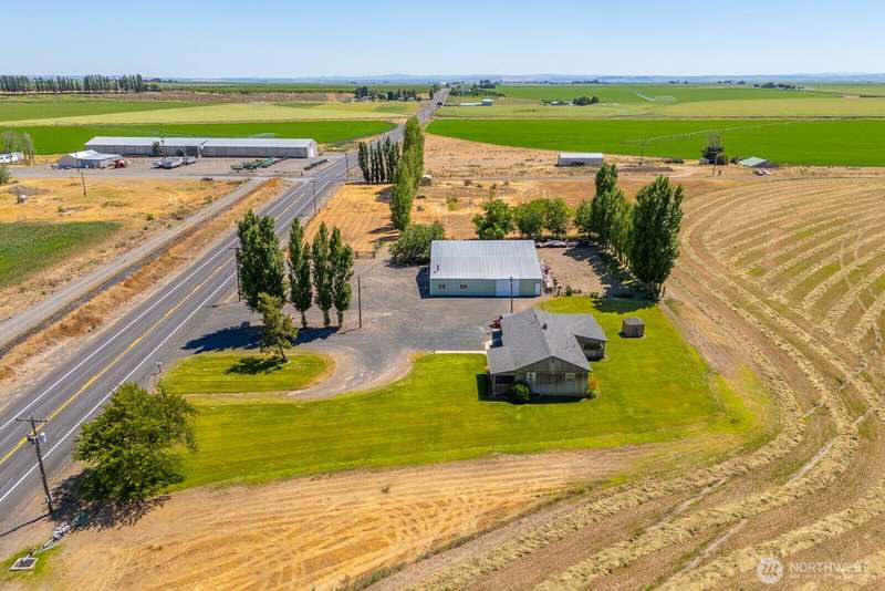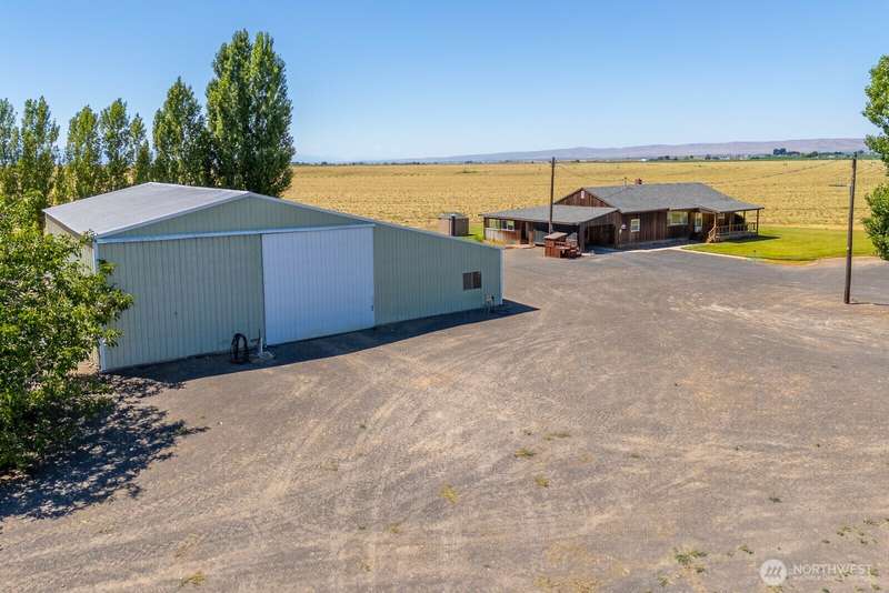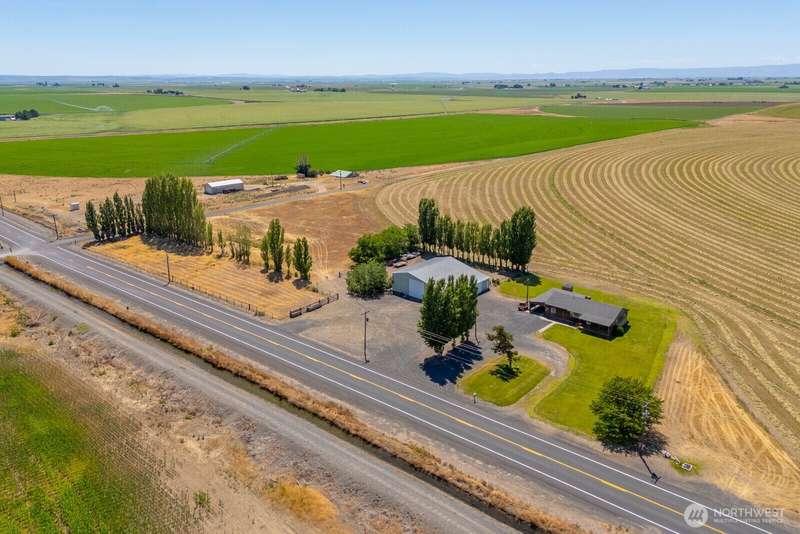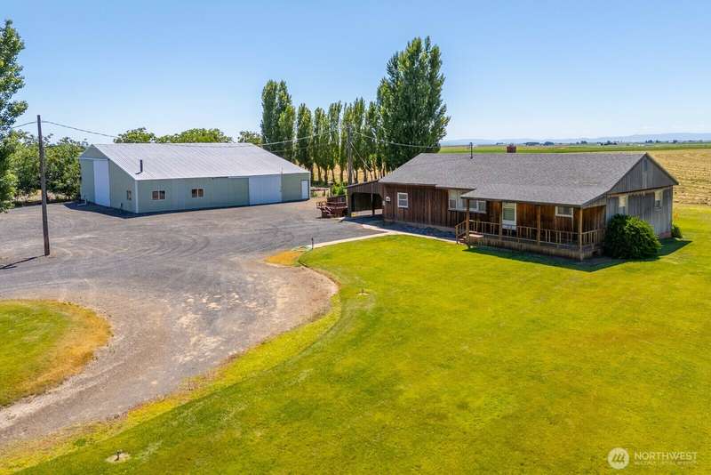 Country property with acreage and front porch sunrises. This homesite has approx 6 acres or property with 3.8 acres of irrigation rights with QCBID, a huge shop with 1/2 bath and room for more, (animals, hobby farm, garden and more). Great covered and enclosed back porch- perfect for entertaining. There is a large home office, the main floor has a living room, 2 bedrooms plus a full bath. The basement with a fireplace, 3/4 bath and 2 bedrooms (need egress) and a rec room. The property has potential to add and ADU (buyer to verify with county code) with a functioning separate septic system and shared water line from well.