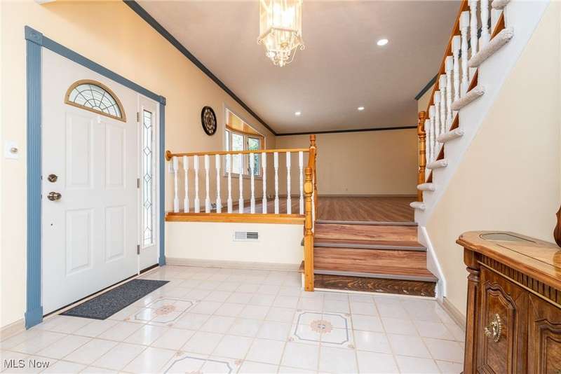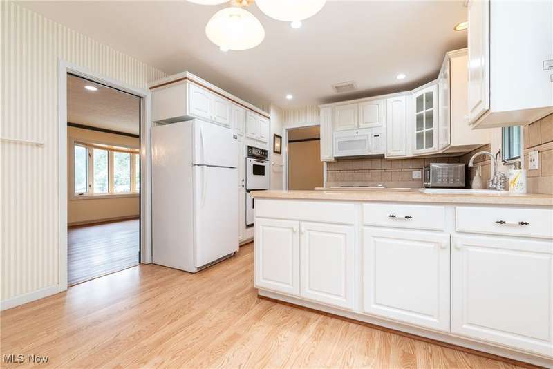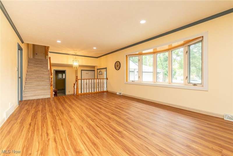 Location! Location! Fabulous, 4-bedroom, 2 full bath split level on this highly desired street in Highland Heights. Numerous updates, primary bedroom can be on 1st or 2nd and is situated on a gorgeous .37-acre lot with wooded views. The heart of this home is the eat-in kitchen with white cabinets, built-in appliances and eating area with garden window that opens to the large family room with fireplace and sliding glass doors leading to the covered patio. Inviting foyer leads to the spacious L-shaped living room with beautiful bay window and formal dining room. First floor bedroom with huge walk-in closet and adjacent full bathroom. First floor laundry/mudroom with access to garage. The 2nd floor offers 3 large bedrooms and 2nd full bathroom. The basement offers additional laundry room, storage area and plenty of space for play, gaming, etc. 2 car garage with extra storage/work area. Fabulous, covered patio overlooking the large backyard. Great curb appeal!