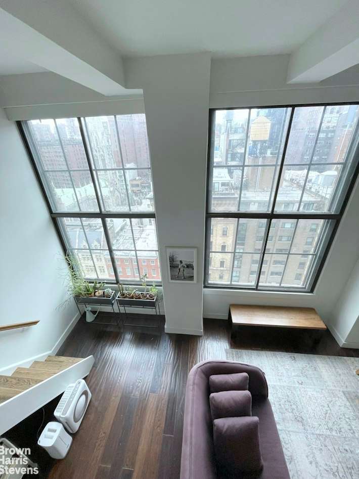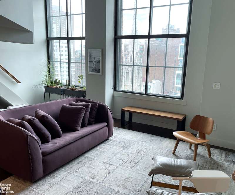 Facing west with unobstructed city views including the beautiful Grace Church, stunning sunsets and open blue skies, this unique home is in excellent condition and features soaring 13' ceilings, two original industrial casement oversized windows (10' tall) yielding amazing light throughout the entire day, noise proof inner windows, central air conditioning and heat, wood floors, excellent closet space including a walk-in closet, modern white kitchen and bathroom, a large full height (6'3) mezzanine bedroom loft with massive storage space, and many more amazing details.