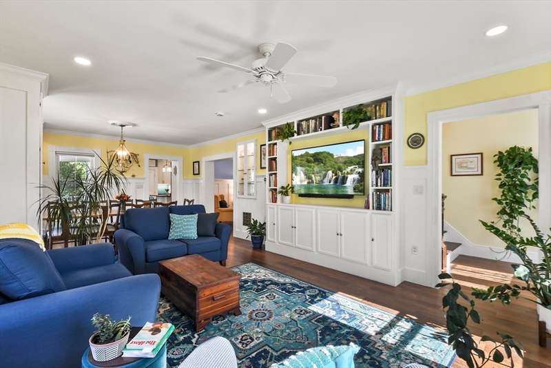 Home office, business, and ADU potential! This beautifully "historically renovated" 3-bedroom, 2-bath Colonial offers nearly 1,900 sq ft of flexible living space bonus garage is perfect for multigenerational living or those seeking a home-based business setup. The oversized heated garage with finished bonus room provides endless options for a private office, studio, gym, guest suite, or future ADU. Inside, you'll find timeless charm with original hardwood floors, crown molding, wainscoting, and custom built-ins showcasing 19th-century craftsmanship. The kitchen features quartz counters, stainless appliances, and a bright bay window. Upstairs offers three spacious bedrooms with hardwood floors and custom closets. Enjoy a fenced yard with paver patio, powered treehouse, outdoor shower, and heated shed. Conveniently located near Routes 93 & 24!