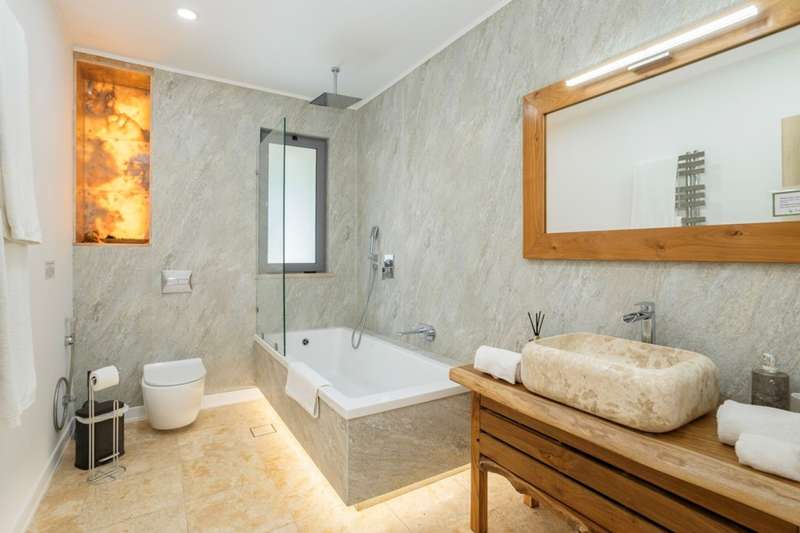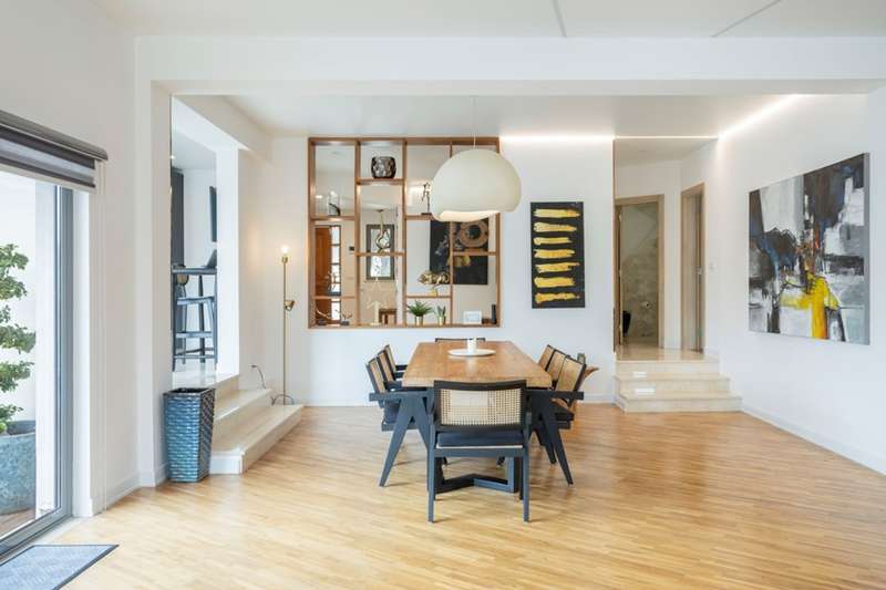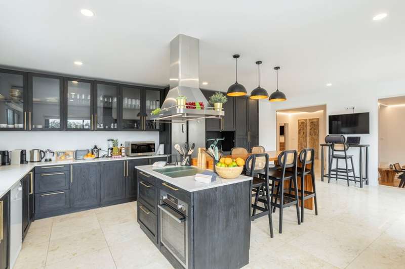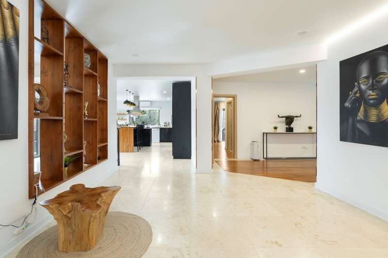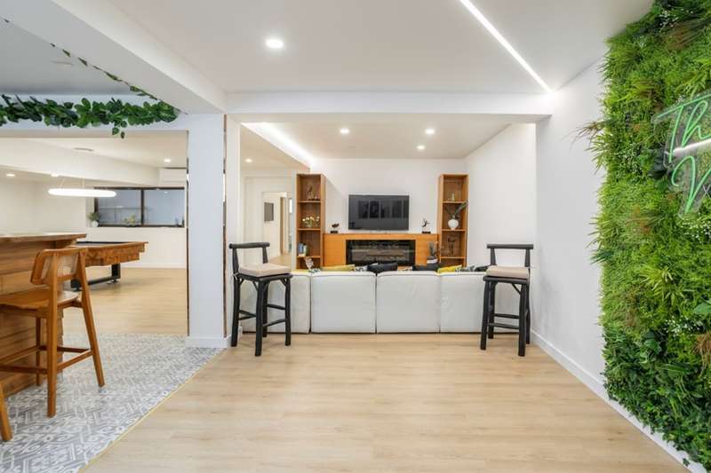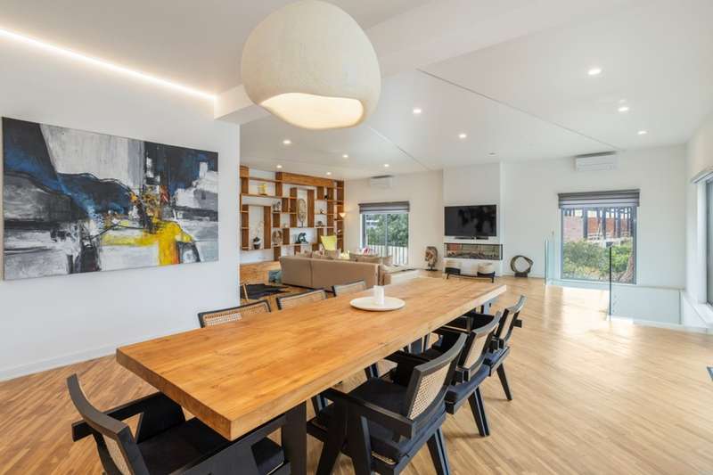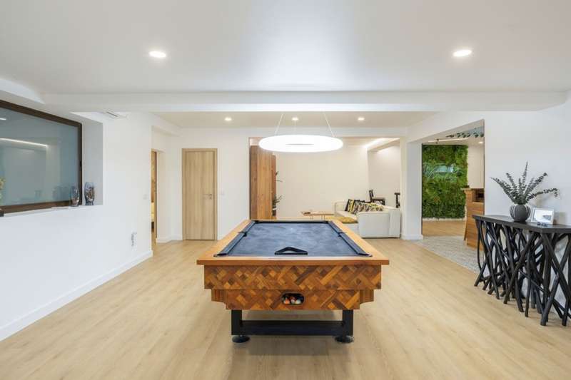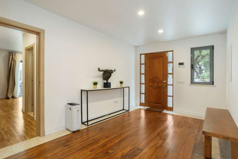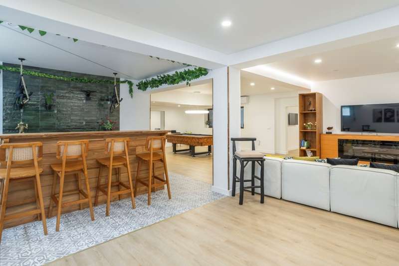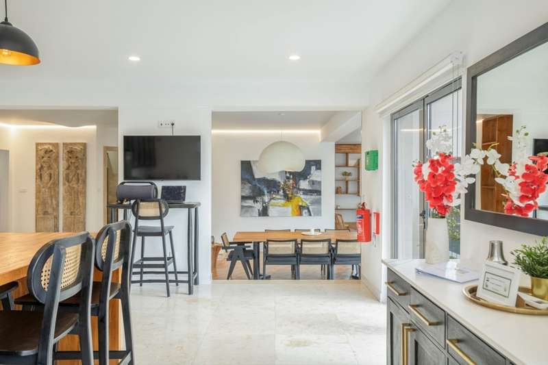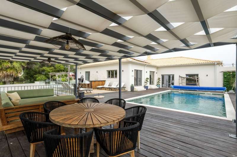 This villa, located in Almancil, impeccably combines elegance, comfort and privacy, and is just 5 minutes from the prestigious Golden Triangle, Vale do Lobo and Quinta do Lago areas of the Algarve. Spread over two floors, this modern and sophisticated residence is distinguished by its large spaces and high standard finishes. Comprising 6 bedrooms, 3 of which are suites, including a master suite with walk-in closet and views of the garden and pool, it offers an environment of great comfort and well-being. Fully renovated, the villa is equipped with Mitsubishi air conditioning , an electric fireplace and photovoltaic panels, guaranteeing excellent energy efficiency. The kitchen, equipped with AEG appliances, combines functionality and aesthetics, while the lower floor has been designed for leisure, with a games room, bar and lounge area. The terrace provides a unique setting, with a lounge area, outdoor dining space and an indoor , heated saltwater swimming pool . The property also has a garage, parking and a garden that ensures total privacy. The Thai-inspired design , with sophisticated and welcoming elements, gives the villa a serene and luxurious atmosphere. This is the ideal place for those who want to enjoy tranquillity without sacrificing proximity to the best services and amenities. Perfect for both private residence and rental, this villa is close to the Algarve's paradisiacal beaches and the region's renowned golf courses. CHARACTERISTICS: Plot Area: 835 m2 | 8 988 sq ft Deployment Area: 273 m2 | 2 939 sq ft Building Area: 546 m2 | 5 877 sq ft Bedrooms: 6 Bathrooms: 6 Garage: 2 Energy efficiency: D FEATURES: 6 bedroom villa Golden Triangle 2 floors Garden Saltwater swimming pool Games room Garage Refurbished Furnished