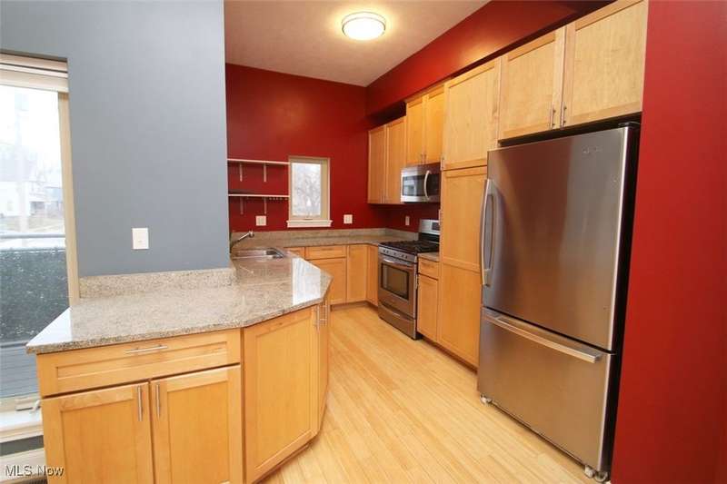 Welcome home to this move in ready town home with open floor plan, high ceilings, and new carpet. You will enjoy 3 levels of fine living. Attached 2 car garage, lower level multi purpose room, main floor with efficient kitchen that boasts, granite counters, stainless appliances, and walk out balcony. Second floor provides master with bath, granite counters, walk in closet, and new carpet. Laundry area, and second bedroom with large closet. Third floor is a large roof top terrace with access to the utility room. This town home is located across the street from library, right at the entry of Martin Luther King Drive. Perfect location for those working, training at University Hospital, Case Western Reserve university, Cleveland Clinic or other cultural sites such as the Museums of Art and Severance Hall. Don't miss this opportunity.