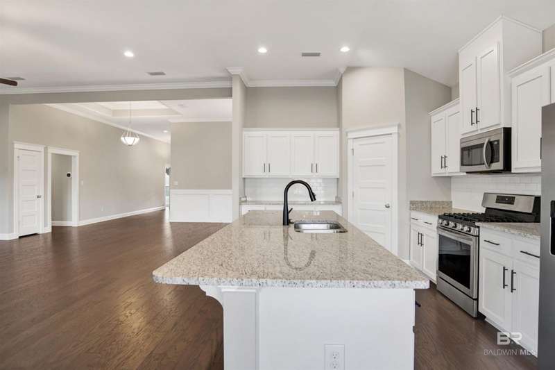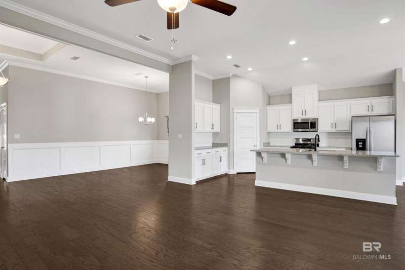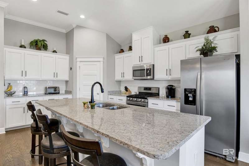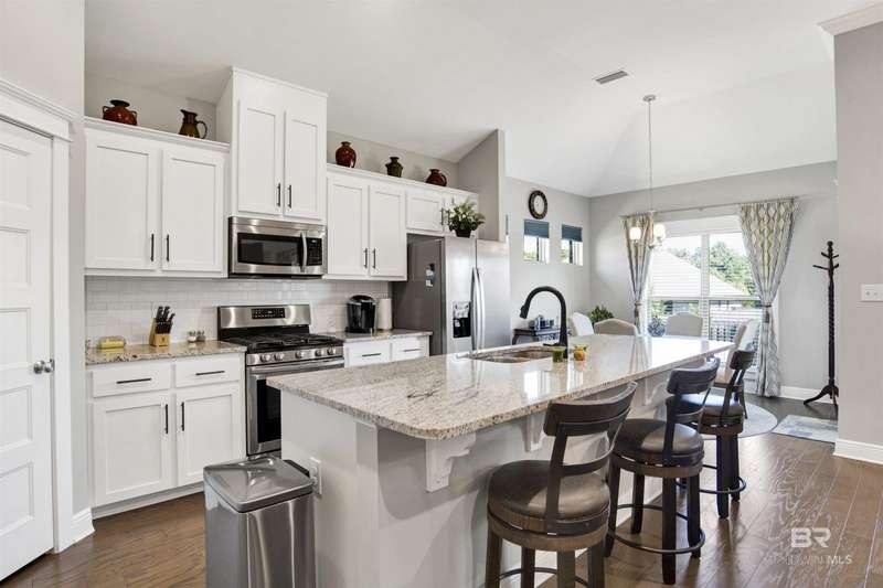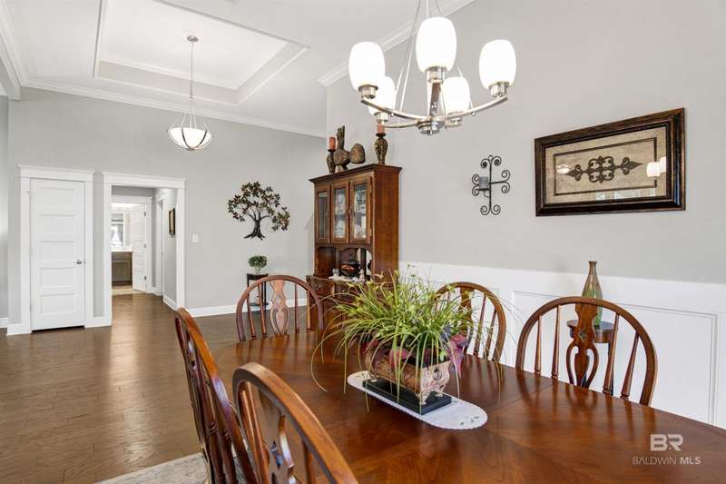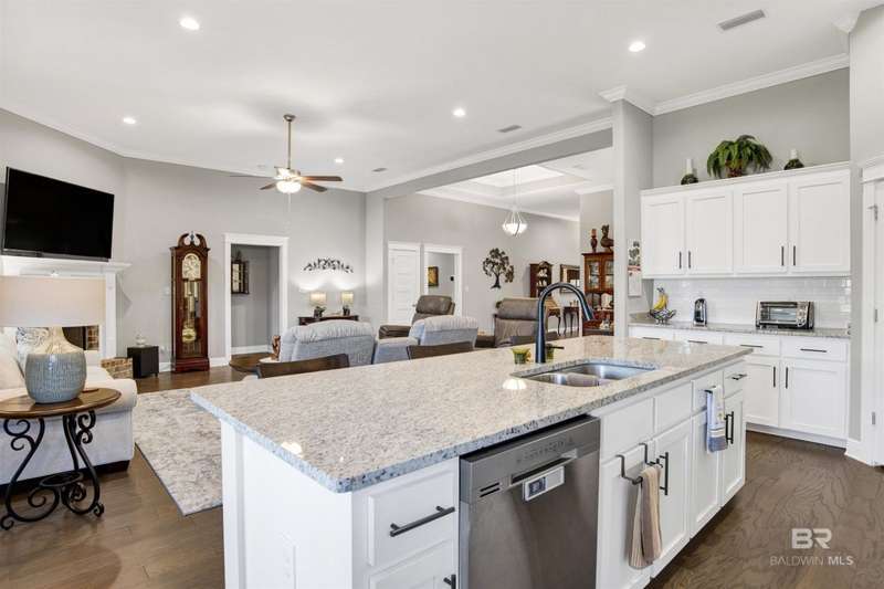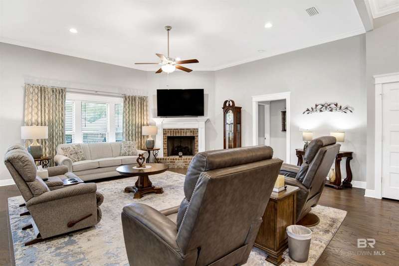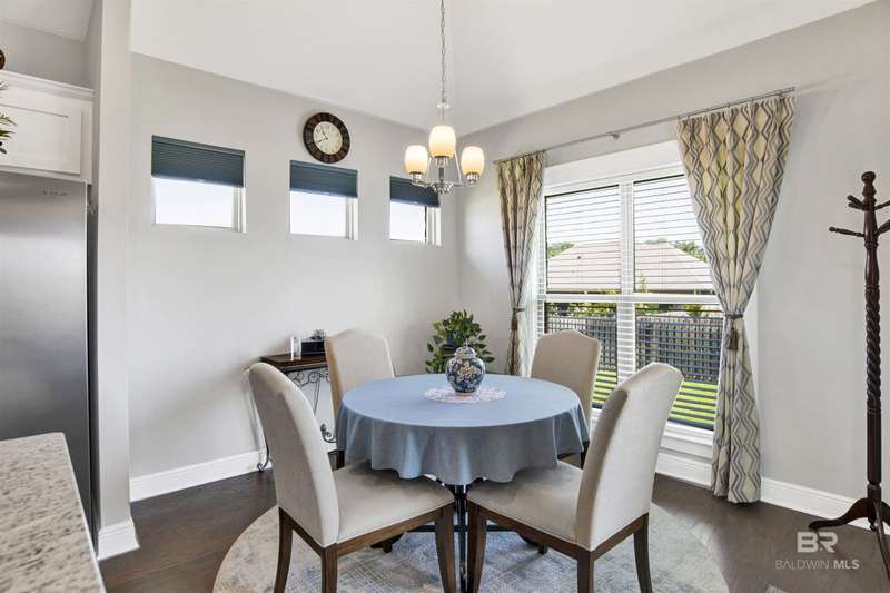 Located less than five miles from Downtown Fairhope, this spacious single-level home blends quality construction with everyday convenience. Built by Truland Homes in 2020, the Easton plan offers 4 bedrooms, 3 bathrooms, a formal dining room, and a breakfast nook, providing flexible spaces for both entertaining and daily living. Inside, the thoughtfully designed open-concept layout welcomes you into a bright family room anchored by a cozy fireplace. The chef's kitchen is both stylish and functional, featuring a large center island with bar seating, a large pantry, granite countertops, a gas range, and seamless flow into the breakfast area and dining room. The primary suite offers a true retreat with dual vanities, a zero-entry tiled shower, and a spacious walk-in closet. Three additional bedrooms and two full baths provide ample space for guests or a home office. Further highlights include custom blinds and shades, a dedicated laundry room, and a mudroom/drop zone. The covered back porch creates an ideal spot for morning coffee or evening relaxation, while the large lot provides ample outdoor space that requires minimal maintenance. Nestled in an established neighborhood in northeast Fairhope, The Tracery offers a serene setting just minutes from the city's shops, restaurants, and cultural attractions. With its smart layout, modern comforts, and blend of open living and private retreats, this home delivers the perfect balance of style, security, and convenience. Home is Fortified Gold and includes gutters, an in-ground sprinkler system, smart home features, and a whole-house gas generator. Buyer to verify all information during due diligence.
