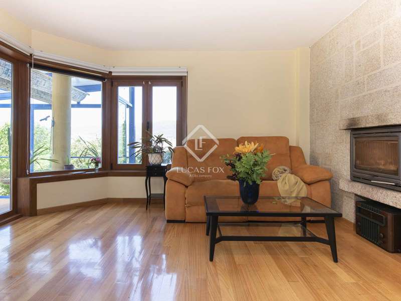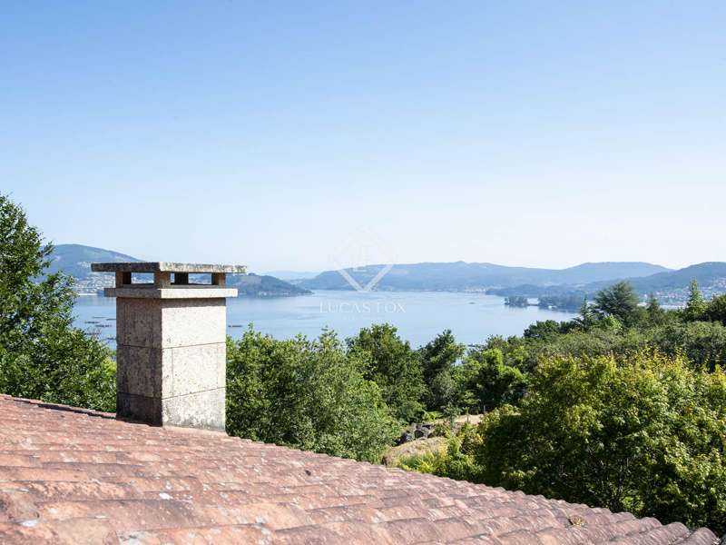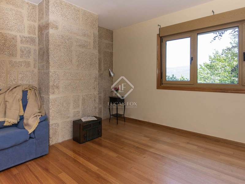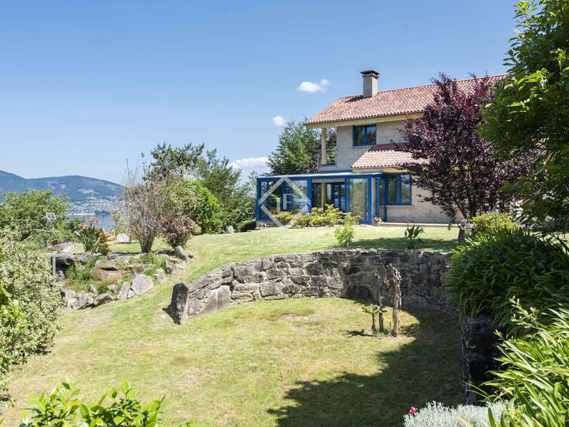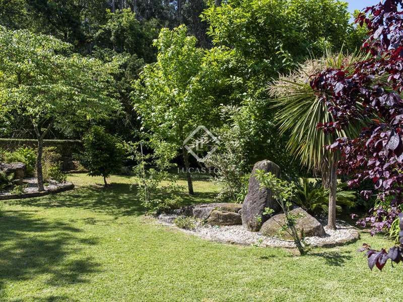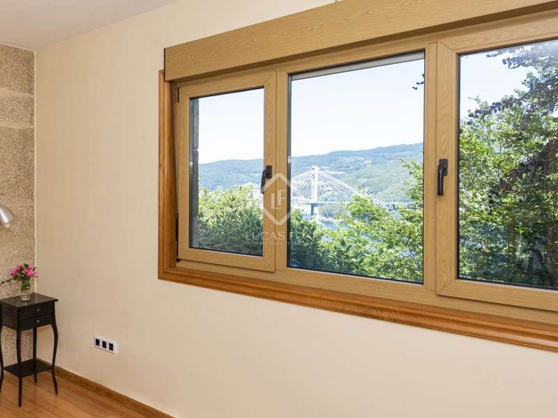 A few minutes from the city centre of Vigo, we find this exceptional, well-built villa with a charming mature garden area and stunning views of the Estuary of Vigo. The property, situated on a hilltop overlooking the northwest, offers a stunning location surrounded by green spaces and is in a quiet residential area. The villa, built and designed by the current owner in 2001, provides a strategic location and a great style and layout. Once we enter the property, we are welcomed by a lush garden with fruit trees, oaks, maples and a nice, well-kept lawn area. The exterior offers a stone table, a parking area and a small pond. Once we enter the villa, we have the reception hall that distributes the whole ground floor. On the right side, we have one double size bedroom, a study, a bathroom and a guest toilet. Towards the left side, we find a home office, the eat-in kitchen, the dining area and the living room with a fireplace that gives access to a covered terrace. On the first floor, we find the sleeping area, where there is the main en-suite bedroom with a balcony overlooking the estuary, two bedrooms and a complete bathroom. The ground floor offers a parking area for two cars and a small room for storage. In recent years, certain utility installations of the property have been updated. Both the building and installations are of a high standard. The property would be ideal for a growing family living near a big city, surrounded by nature and good views. Good schools are nearby, and quick access links to other areas of Vigo and Pontevedra. Please contact us for further information.