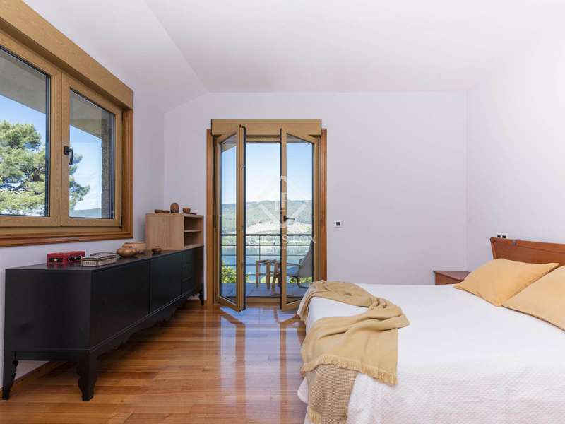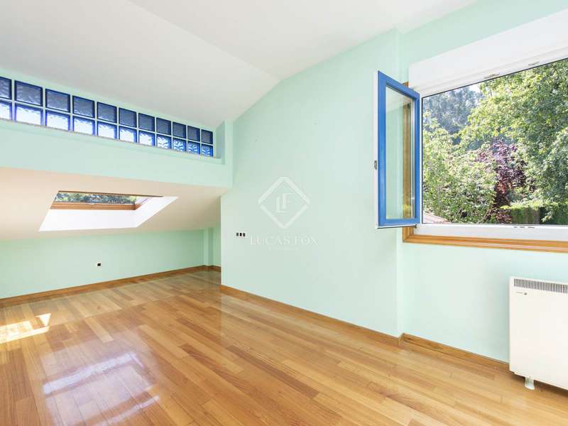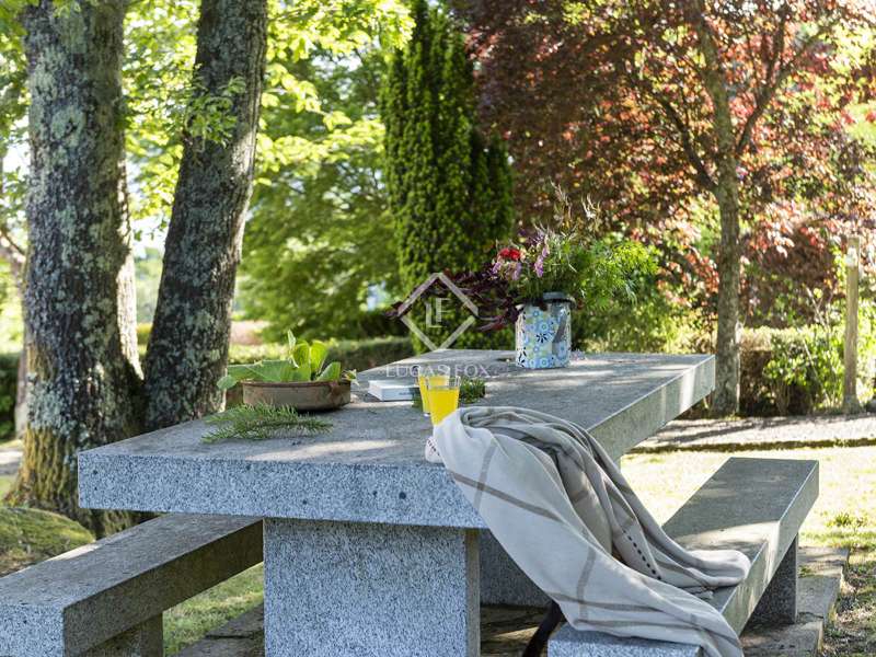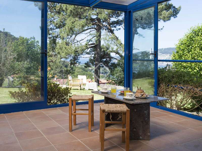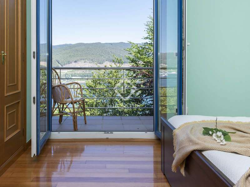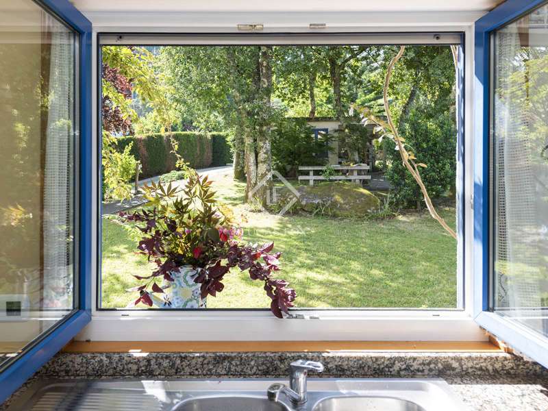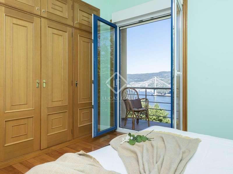 A few minutes from the city centre of Vigo, we find this exceptional, well-built villa with a charming mature garden area and stunning views of the Estuary of Vigo. The property, situated on a hilltop overlooking the northwest, offers a stunning location surrounded by green spaces and is in a quiet residential area. The villa, built and designed by the current owner in 2001, provides a strategic location and a great style and layout. Once we enter the property, we are welcomed by a lush garden with fruit trees, oaks, maples and a nice, well-kept lawn area. The exterior offers a stone table, a parking area and a small pond. Once we enter the villa, we have the reception hall that distributes the whole ground floor. On the right side, we have one double size bedroom, a study, a bathroom and a guest toilet. Towards the left side, we find a home office, the eat-in kitchen, the dining area and the living room with a fireplace that gives access to a covered terrace. On the first floor, we find the sleeping area, where there is the main en-suite bedroom with a balcony overlooking the estuary, two bedrooms and a complete bathroom. The ground floor offers a parking area for two cars and a small room for storage. In recent years, certain utility installations of the property have been updated. Both the building and installations are of a high standard. The property would be ideal for a growing family living near a big city, surrounded by nature and good views. Good schools are nearby, and quick access links to other areas of Vigo and Pontevedra. Please contact us for further information.