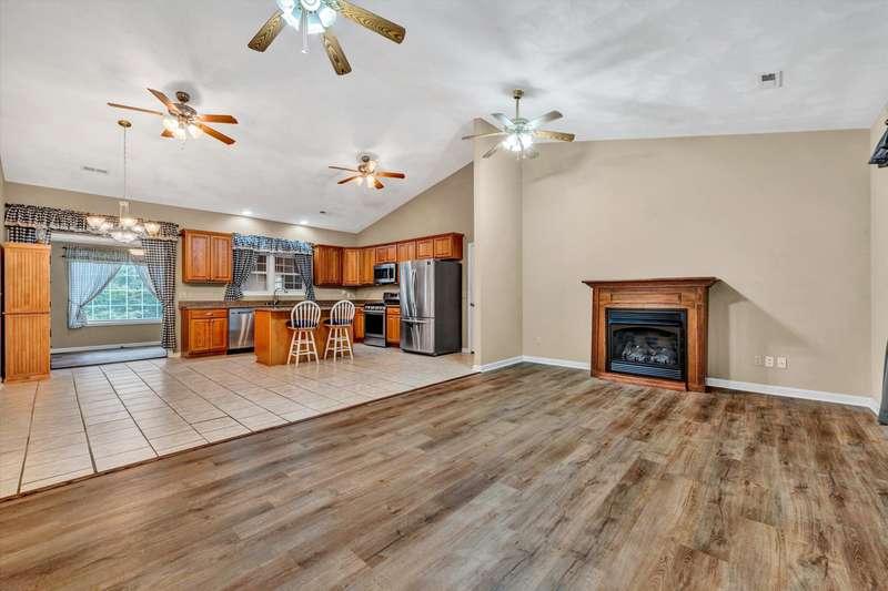 Adorable Contemporary Ranch with Lake Access. Family Room added. Great Rm with Gas Fireplace, Remodeled Kitchen with Island and Quartz Countertops, Newer SS Appliances including Gas Range, Dishwasher, Microwave & Refrigerator, New Walk in Shower, One Level Living with Master Ensuite. Fenced in Outdoor Oasis in Rear with Screened Picnic Gazebo and new maintenance free deck, Double Car Garage and Storage Building. Generator