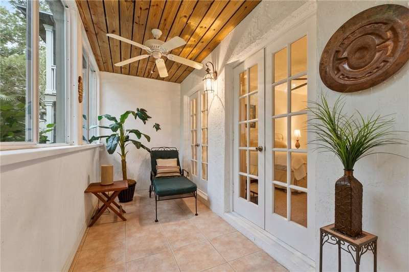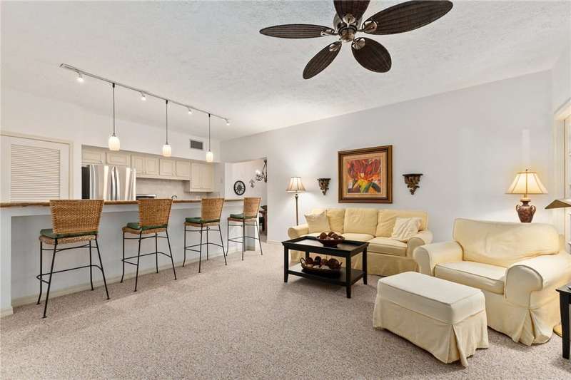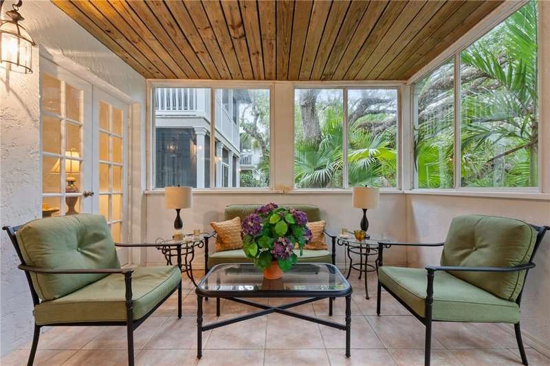 This spacious first-floor Tennis Villa in Sea Oaks offers over 1,150 square feet, including a furnished porch. It is just a short walk from the pool, Beach Club, and Tennis Club. The enclosed porch is great for entertaining or hosting guests. Enjoy privacy and views of beautiful oak trees in the backyard. The kitchen has new appliances and granite countertops, and there is an extra storage closet in the building. Sizes approx/subj to error.