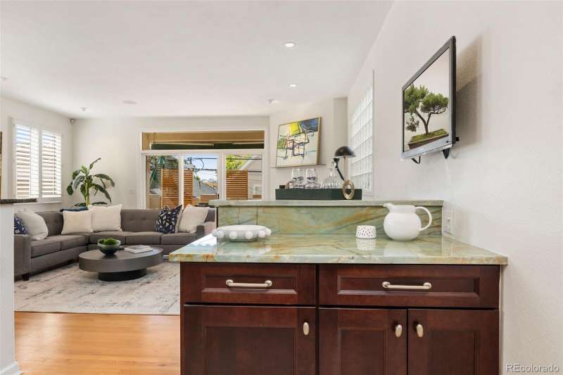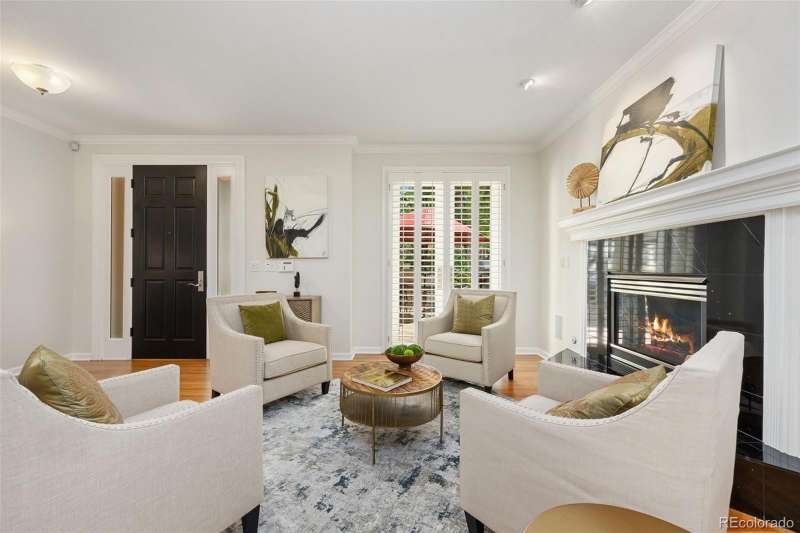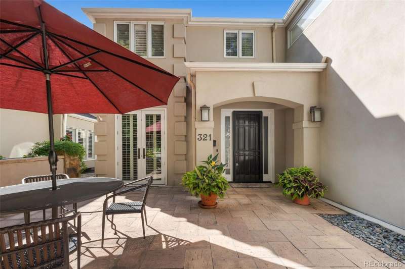 In Denvers most desirable neighborhood, this stunning townhome offers the perfect blend of luxury, charm, & comfort. Inside is a warm, inviting space filled stylish finishes-an effortlessly ambiance. Every detail has been meticulously maintained, making this home move-in ready. The open-concept is accentuated by soaring ceilings, gorgeous hardwood floors, plantation shutters & abundant natural light. Walk into a comfortable living area anchored by a gas fireplace leading into a spacious private dining room. The floorplan flows effortlessly into the chef's dream kitchen by Williams Ohs w/ knotty alder cabinets, granite + quartzite counters, SS appliances. It opens to the family room a w/ a comfy gas fireplace. Upstairs, the primary en-suite is pure indulgence. Think spa vibes w/ a romantic gas fireplace, private balcony & 2 walk-in closets. The primary bathroom offers the ultimate relaxation experience with a deep soaking tub, dual vanities and a large glass-enclosed shower. Down the hallway is another en-suite bedroom. There is plenty of storage in the finished basement along with another bedroom, bathroom, and great room with built in book shelves. Attached is the oversized 2 car garage for added convenience. You'll fall in love with the AMAZING OUTDOOR SPACES! With your first steps from the street, open the rod iron gate to enter into the lush, professional landscaped garden. It will make you feel as if you walking into the Bridgerton garden, leading you to the beautiful, large private courtyard. But this is not the only outdoor space! Just off the family room is a large terrace with a retractable awning, ideal for al fresco dining and entertaining along with a balcony off the primary bedroom. And when it's time to explore, step outside and you are mere steps from the pulse of Cherry Creek North - world class dining, shopping, art and culture all at your fingertips.This isn't just a home. It's a mood. A moment. A move you won't regret.