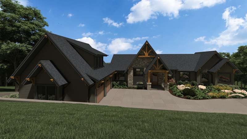 Nestled on a beautiful double lot, this exceptional land/home package offers an unparalleled living experience, combining luxurious design with panoramic long-range mountain views and vistas of the renowned Bright's Creek Golf Course. Set within the exclusive Bright's Creek Golf & Equestrian community, this home is the epitome of mountain elegance and modern comfort. The open-concept floor plan is perfect for both everyday living and entertaining, featuring soaring vaulted ceilings that create a sense of spaciousness throughout. The main floor is highlighted by a luxurious primary suite, offering privacy and convenience with direct access to the home's living spaces. The lower level offers versatile living space, including a den and two ensuites. For even more potential, the room above the garage can be finished to suit your needs as an additional bedroom, office, or entertainment space. Located within the prestigious Bright's Creek development, known for its exceptional golf.