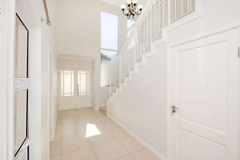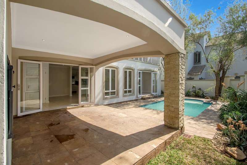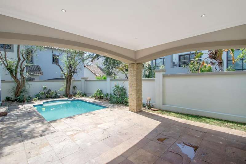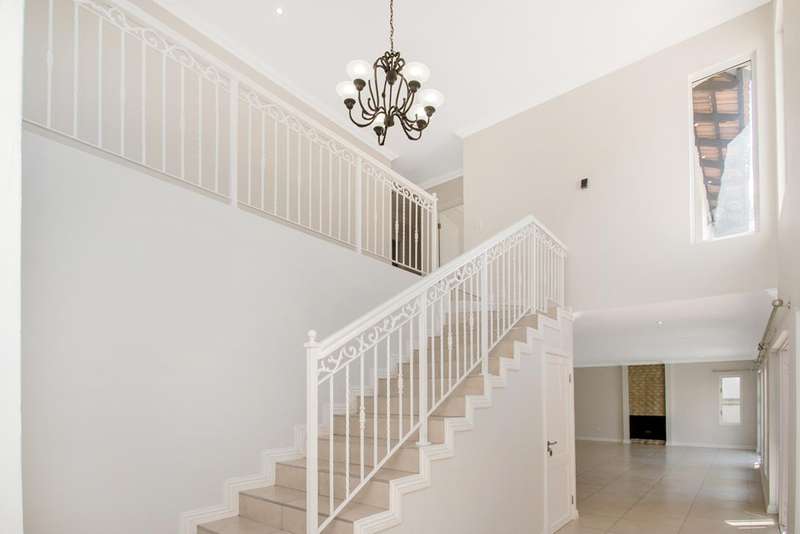 Elegant Double-Volume Residence with Pool & Inverter ?Çô A Lifestyle of Luxury Step into a home where timeless elegance meets contemporary living. From the moment you enter the grand double-volume entrance hall, you are welcomed into a space designed to impress, with natural light cascading through and highlighting the home?ÇÖs refined finishes. The open-plan lounge and dining area forms the heart of the home, warmed by a feature fireplace for cosy winter evenings. French doors open seamlessly onto a spacious covered patio, where views of the landscaped garden and sparkling swimming pool set the stage for stylish entertaining and relaxed outdoor living. The designer kitchen combines functionality with flair, showcasing granite countertops, a gas hob, chic white and glass cabinetry, and statement wall tiles that elevate the space. A discreet scullery provides ample room for a side-by-side fridge and three appliances, keeping everyday life organised and clutter-free. A private study offers the ideal work-from-home sanctuary, while a guest cloakroom and double garage complete the ground floor with effortless practicality. Upstairs, three generously proportioned bedrooms offer serene retreats, complemented by two indulgent full bathrooms, both featuring double vanities and premium finishes. Each bedroom enjoys access to expansive balconies, creating a sense of flow between indoor luxury and outdoor tranquillity?Çöperfect for morning coffees or sundowners in complete privacy. Attention to detail is evident throughout, from the classic white aluminium doors and windows to the generous proportions of every room, designed with comfort and lifestyle in mind. Adding to its appeal, the home is fitted with a 5kVA inverter, ensuring uninterrupted living and peace of mind during load shedding. Disclaimer: Information provided is deemed reliable but not guaranteed. All details are approximate and subject to change without notice. Buyers are advised to verify all information. Seller and agents make no warranties. Availability subject to change.
