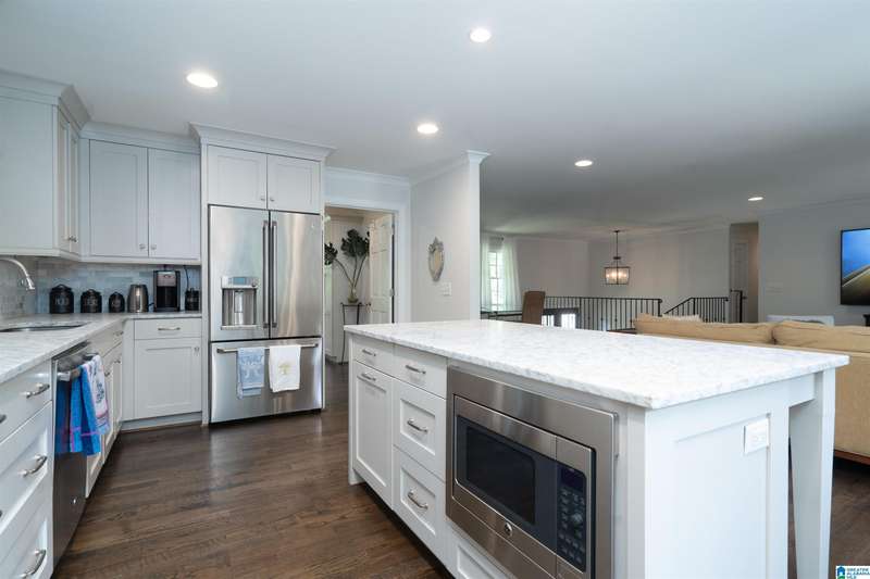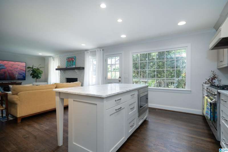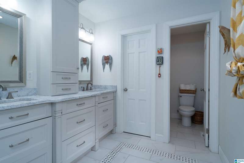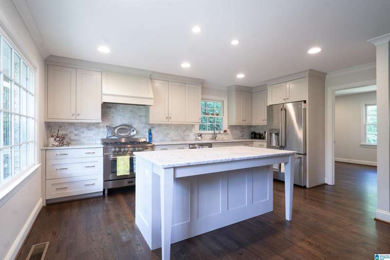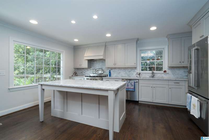 Welcome to this remodeled home in Vestavia Hills' coveted Tanglewood! Tucked on a peaceful cul-de-sac, this beautifully updated 4-bedroom, 3-bath home offers nearly 3,000 sf of stylish, functional living space. Step inside to gleaming hardwoods and an open-concept main level perfect for everyday living and entertaining. Chef's kitchen with marble counters and backsplash, generous island w/bar seating, gas cooktop and top-of-the-line appliances. Just off the kitchen, spacious laundry room adds convenience and plenty of storage. Retreat to serene primary suite with marble-topped dual vanities and a walk-in closet thoughtfully designed for maximum organization. 3BR/2BA on main level, with additional BR and full bath down'ideal for guests or home office. Large family room provides versatile space for kids, movie nights, or hobbies. You'll find multiple storage closets, two-car garage, an extra storage room for all your needs. Enjoy summer gatherings on deck overlooking fenceed backyard