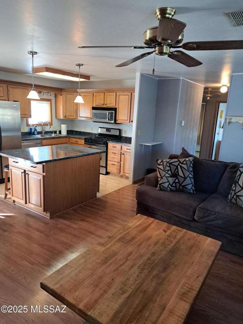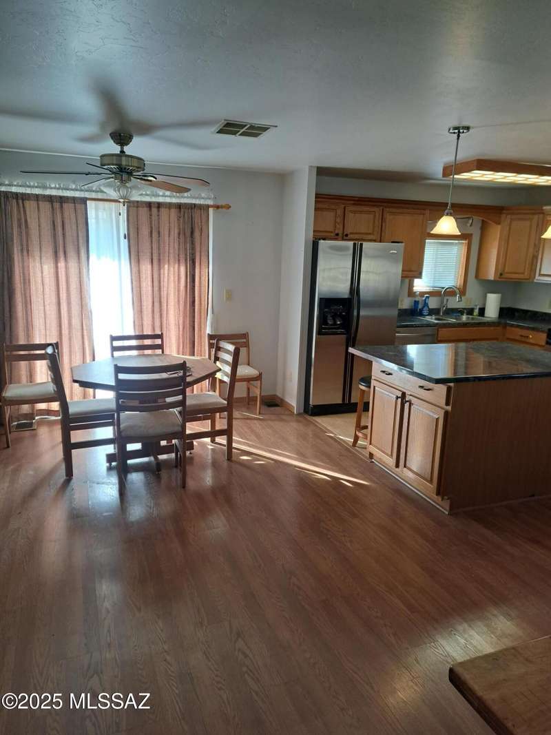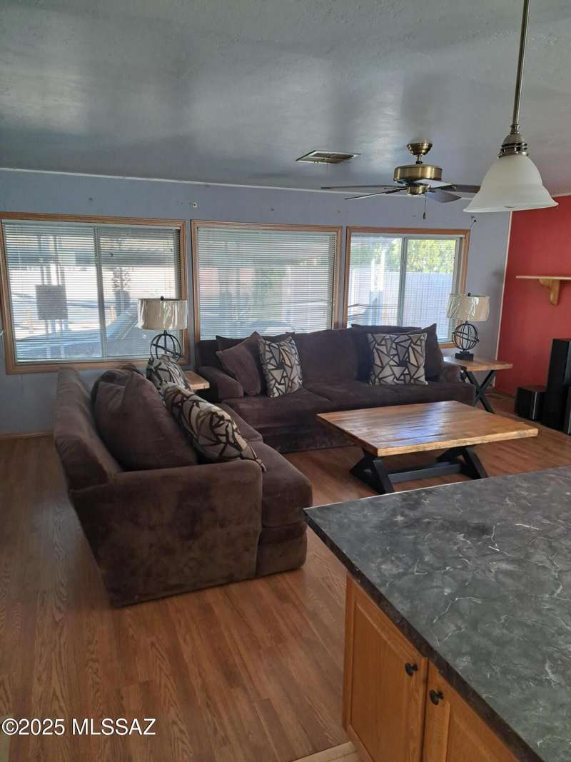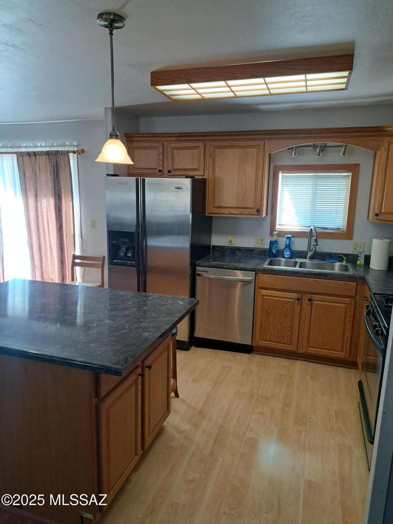 Nice home in Tucson Estates ! This 3 bedroom and 2 bath home has some lovely updates in the kitchen and bathrooms. Stainless appliances, double sink and a large island with a lot of storage. This open concept floorplan is perfect for entertaining! Fully furnished home. Corner lot and you own the land!!