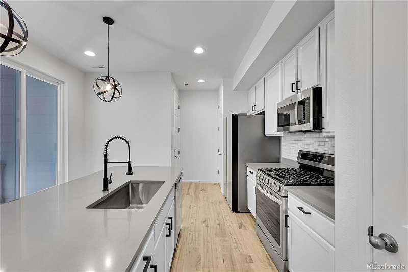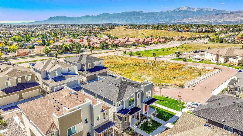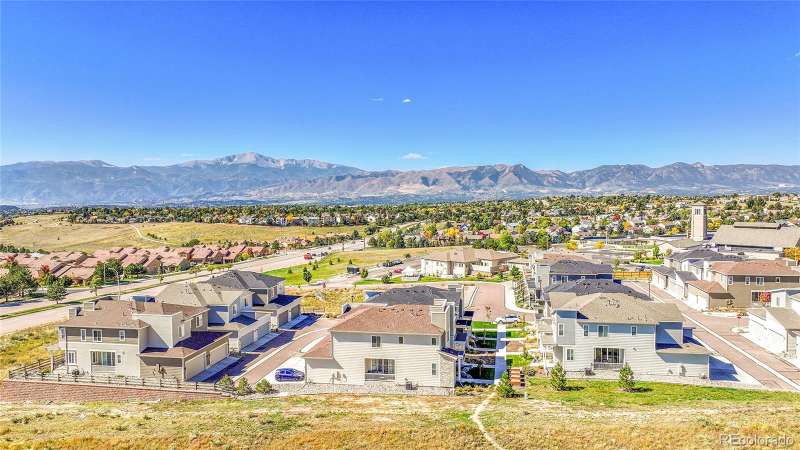 Welcome to 5062 Baseline View - a beautifully updated 3 bed, 3 bath townhome offering 1,539 finished sq ft, and surrounded by majestic mountain views. This move-in-ready home blends modern style, thoughtful upgrades, and energy-saving features. The open main level impresses immediately with 9 ft ceilings, 8' doors, and wide-plank LVP flooring. The gourmet kitchen is a true centerpiece, boasting quartz countertops, a farmhouse sink, new pendant lighting, a brand-new 5-burner gas stove, and a new smart-tech refrigerator with a 5-year warranty. The spacious living and dining areas flow seamlessly for entertaining or daily life, while energy-efficient window tinting helps reduce electricity costs by up to 30%. From the kitchen, step outside to a private patio, perfect for morning coffee, or relaxing while enjoying sunny Colorado days. A recently renovated powder room with a new vanity, lighting, and hardware adds a touch of luxury to the main level. Upstairs, the primary suite is a private retreat, featuring stunning mountain views, a large walk-in closet, and a spa-like en-suite bath with quartz counters, dual sinks, and upgraded finishes. Two additional bedrooms, plus a conveniently located laundry room, complete the upper level, making everyday routines simple and efficient. The extended-height 2-car garage provides generous overhead storage for outdoor gear, tools, or seasonal items. An inviting front porch offers a warm welcome to guests and another spot to unwind. The HOA covers all landscaping, giving you the freedom to enjoy more of what Colorado has to offer without the yard work. Perfectly positioned near the US Air Force Academy and the Promenade Shops at Briargate, this home is truly move-in-ready!