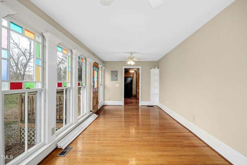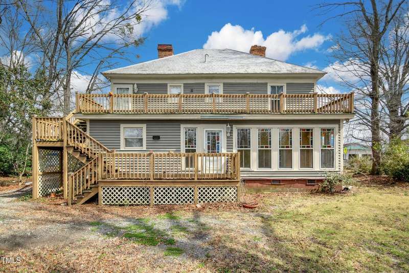 Nestled in the heart of the historic and picturesque town of Broadway, known for its tranquility and small town charm, sits this delightful farmhouse, offering a serene retreat for those seeking a peaceful yet convenient lifestyle. Approaching this property, the metal roof immediately captures your attention with its traditional silhouette and rustic charm. Stepping through the front door, you are immediately struck by the clever design that accommodates two distinct living quarters within a single structure. This unique layout seamlessly combines functionality with versatility. The ground floor features a two bedrooms and a spacious living room. However, it's the sunroom that steals the show on the first floor, with its beautiful stained glass windows and tranquil ambiance. Bathed in sunlight and adorned with vibrant hues, this serene retreat offers a sanctuary for relaxation and contemplation, where you can bask in the beauty of naturewhile enjoying the comforts of home. As you explore further, you'll discover the second floor reveals a similar layout. The show stopperon the second floor is undoubtedly the large balcony that serves as a serene outdoor oasis, perfect for enjoying morning or simply basking in the natural splendor that surrounds you. This home is also situated just a stone's throw away from Watson Lake Park which beckons with its myriad opportunities for outdoor fun and relaxation. Whether you're seeking adventure or simply looking to unwind amidst the beauty of nature, this park has something for everyone. In addition, it qualifies to be put on the National Historical Register.