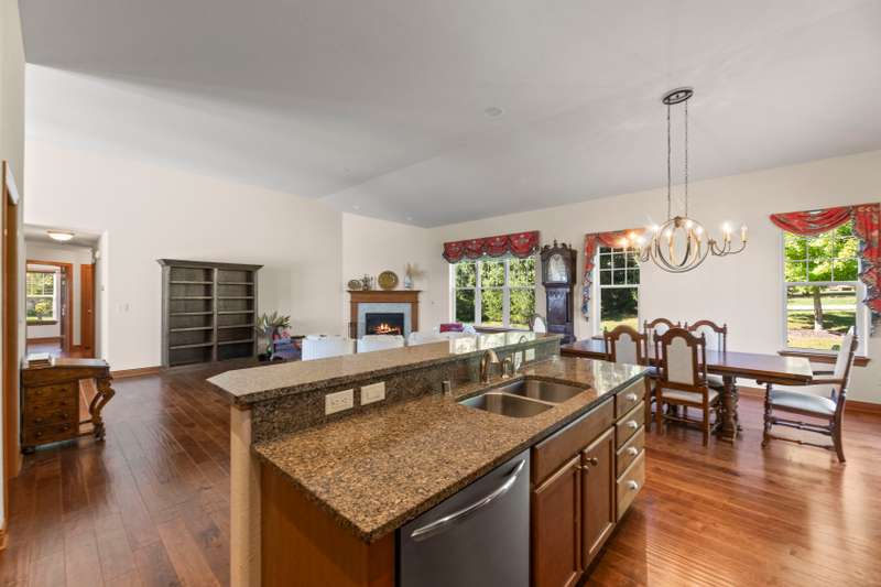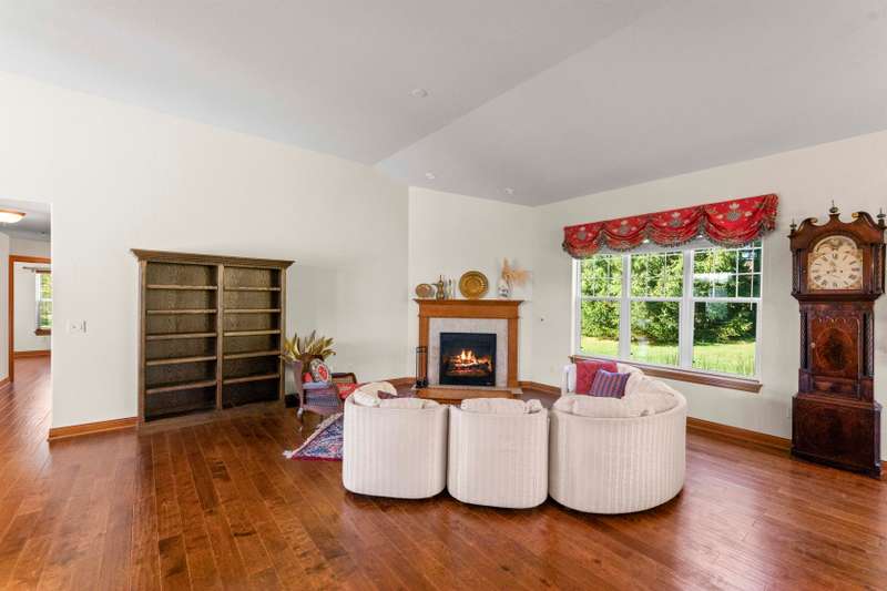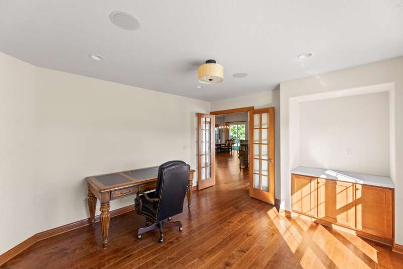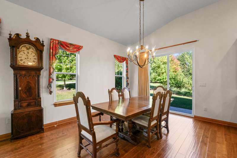 Grand and gracious would not overstate the ambience of this detached, ranch-style home. Views of Bay Pointe pond welcome you to condo living. Natural light enters every room. Overhanging roof shelters your steps to the Great Room. Cathedral ceiling and corner fireplace inspire warm arrangements for gathering. French doors open to east facing den, capturing the water view. Modern kitchen island is situated to maintain informal meal times, with birds in view through the patio doors. High style chandelier accents formal dining. Pantry IS walk-in! Complement to the primary suite is the spacious walk-in closet. Fully carpeted lower level offers unlimited creative spaces for library, crafting, music, and more - plus a third bedroom, a full bath, and boundless storage. Bay Pointe Condominium is a community!
