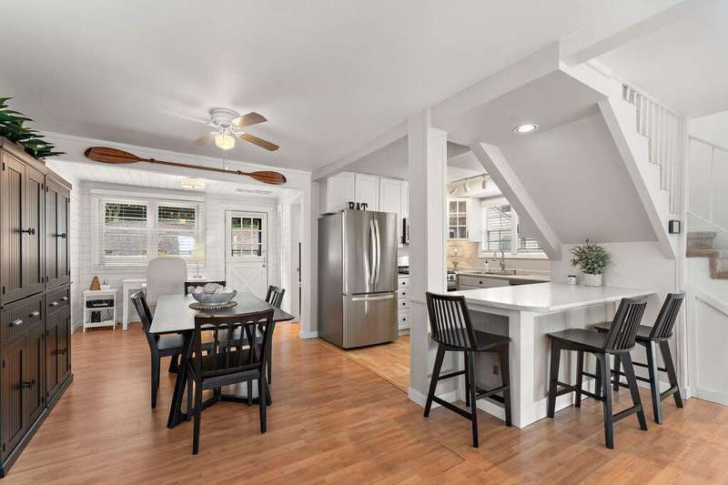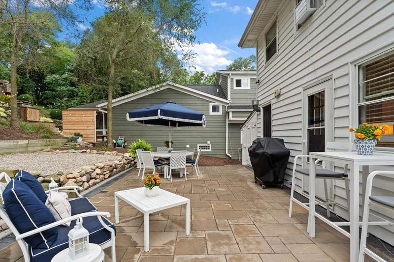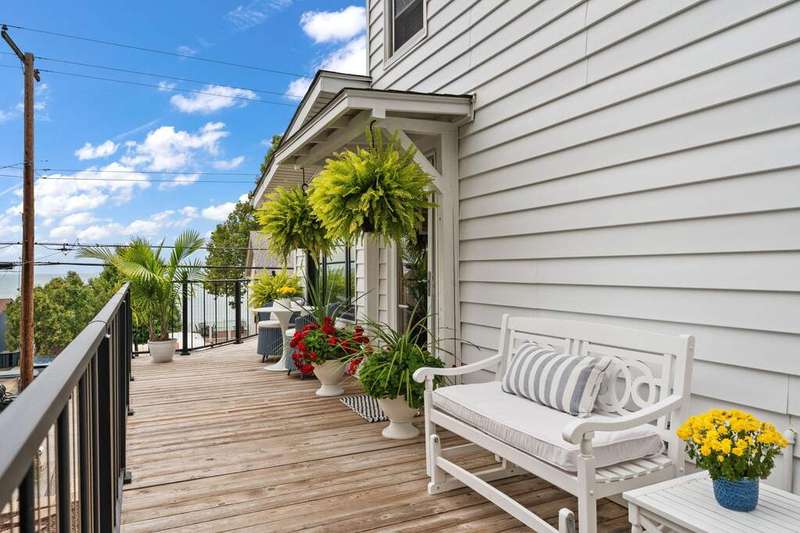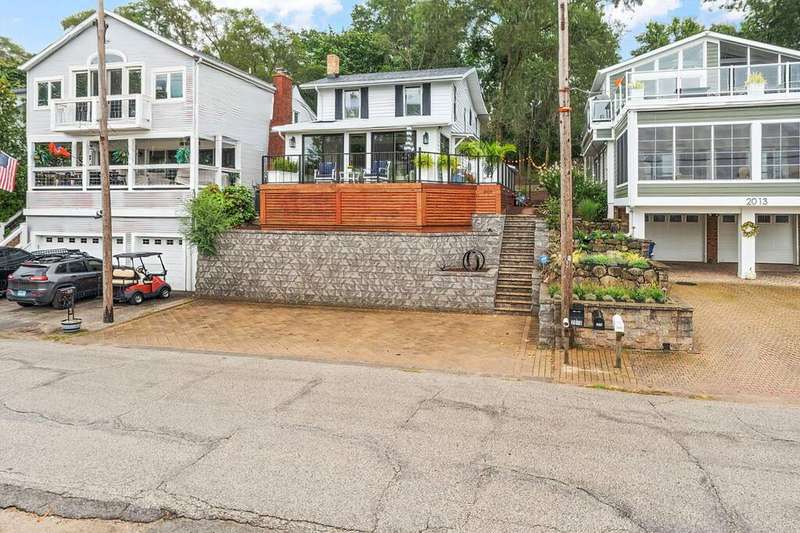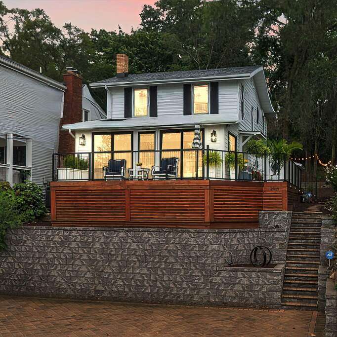 Welcome to lakeside living at Stop 20 on Lake Shore Drive, where every day feels like a weekend getaway! Perched on the hillside with sweeping views of Lake Michigan, this cottage-style retreat is designed for both comfort and charm.Inside, you'll find shiplap-accented walls in the home office, an open-concept layout connecting the Living, Dining, and Kitchen spaces, and LG stainless steel appliance package with a Breakfast Bar perfect for morning coffee before heading off to the beach. The Living Area steals the show with its brick fireplace w/ electric insert, beautiful wood mantel, and double sliding glass doors that lead you directly out to a newly renovated wraparound deck - your front-row seat to breathtaking sunsets and the refreshing lake breeze overlooking Lake Shore Drive.This home offers a main-level full bath and 4 cozy Bedrooms upstairs, and an additional 3/4 bath with a Washer/Dryer. Outside, a new front retaining wall provides rare off-street parking for up to four cars, while the tiered backyard patio creates multiple spaces for entertaining, relaxing, or giving pets their own play area. With a 40x150 lot and a rare hillside backyard, this home combines lakeside charm with everyday functionality. Whether it's sipping wine on the deck, entertaining under the stars, or simply enjoying life along Lake Michigan's shoreline - this is the beach cottage you've been waiting and dreaming of!
