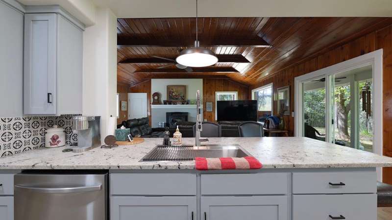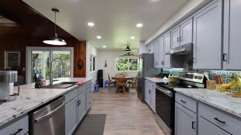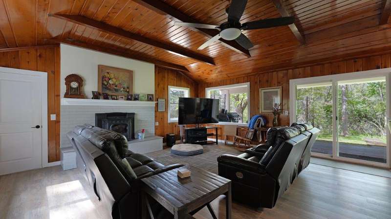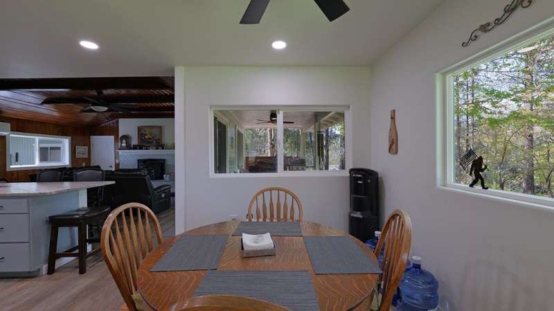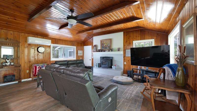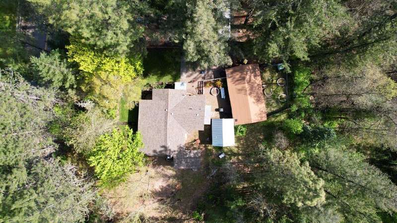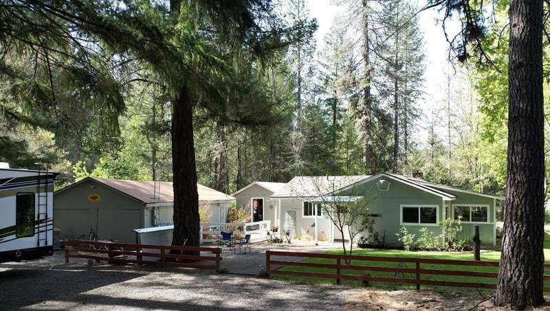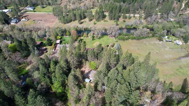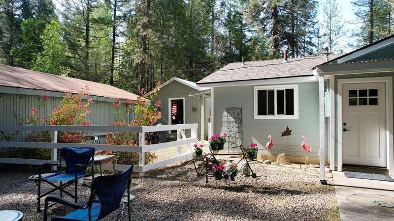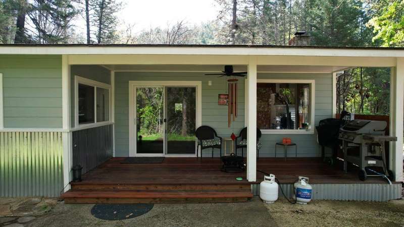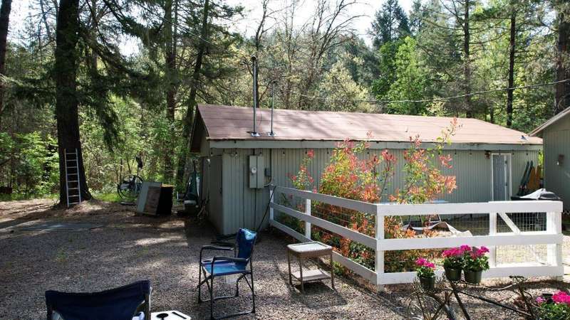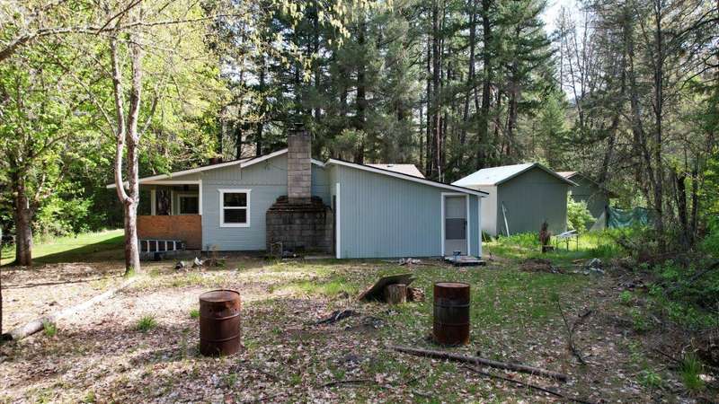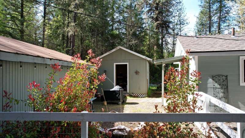 On over 3.5-acres, this beautifully upgraded 2-bedroom, 1-bathroom home plus detached 1-bedroom, 1-bathroom studio—ideal for guests, income, or multi-generational living. Enjoy a gourmet kitchen with leathered granite countertops & high-end appliances. Living Room vaulted knotty pine ceilings, and premium laminate flooring. Recent updates include new roof (2 yrs), electrical panels, interior/exterior paint, Harman pellet stove, and mini-split heat/AC system. Relax on the stunning Redwood deck surrounded by old-growth trees offering privacy and gorgeous views. Oversized garage/shop, 12x15-storage shed, and multiple outbuildings provide tons of storage and workspace. Property includes a strong well (per seller) and irrigation rights, perfect for gardening or future expansion. A truly move-in-ready property with luxury finishes and serene surroundings—don't miss this unique opportunity!