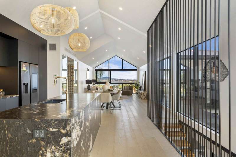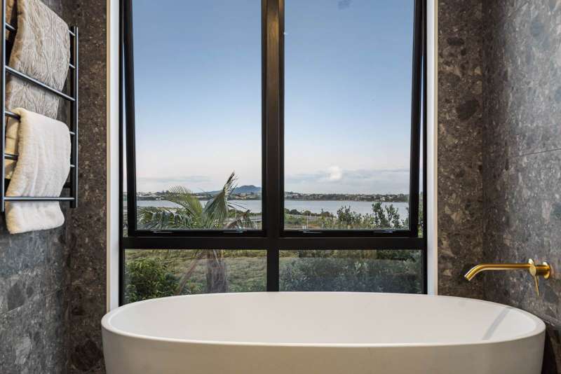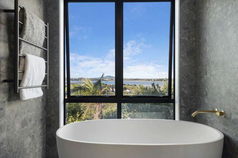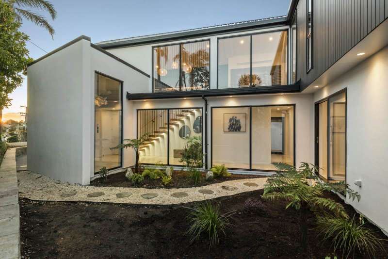 Perched on one of Northcote Point’s most admired streets, this exceptional residence captures spectacular views and embodies the very best of refined coastal living. Just moments across the harbour from Auckland’s CBD, this tightly held neighbourhood is celebrated for its charm, heritage, and enviable convenience — a place where city energy meets relaxed North Shore living. Step inside this brand-new, architecturally designed family retreat and experience the perfect blend of elegance, comfort, and function. Spanning approximately 300m² across two levels, the home delivers a sense of space and sophistication with multiple living zones, ideal for both entertaining and quiet retreat. The upper level is the heart of the home — a sun-filled, open-plan living and dining area framing sweeping water views. The designer kitchen is a dream for entertainers, featuring premium appliances including a gas hob, built-in oven, steamers, and microwave, complemented by a wine cellar for effortless hosting. The living space flows through to a private master suite with panoramic harbour and city vistas, a walk-in robe, and a luxurious ensuite with a soaking tub overlooking the lights of Auckland — a true sanctuary at day’s end. Downstairs, a grand double-height foyer sets the tone for the home’s impressive design. Three additional bedrooms (including one ensuite) share this level with a media room and a generous family lounge that opens onto a sheltered L-shaped balcony — perfect for year-round entertaining or quiet morning coffees. Designed for low-maintenance luxury, this home is state-of-the-art in both style and comfort, offering a lock-up-and-leave lifestyle without compromise. Positioned minutes from Stafford Park, Halls Beach, and Little Shoal Bay, with vibrant cafés, restaurants, and city access close by, this is Northcote Point living at its finest — sophisticated, scenic, and effortlessly convenient. Don’t miss the opportunity to make this remarkable property your own.