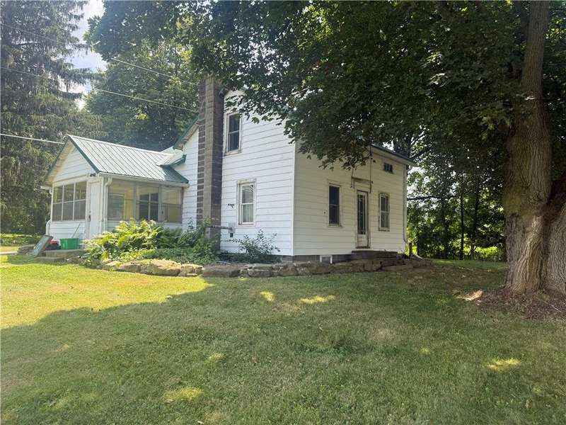 Nestled on just under 2 acres, this charming corner-lot farmhouse offers endless possibilities. The 2-bedroom home retains its original character while featuring modern updates, including a renovated kitchen with a formal eat-in dining area. A cozy pellet stove in the living room efficiently heats the entire house, adding both warmth and ambiance.Upstairs, the oversized bedroom was originally two separate rooms and can easily be converted back, offering the potential for a 3-bedroom layout.The property includes multiple versatile outbuildings?ideal for use as a chicken coop, playhouse, workshop, or extra storage. Enjoy mature gardens throughout, plus a rustic old greenhouse ready for restoration.Conveniently located just 10 minutes from Target and 5 minutes from Lansing schools, this property blends peaceful country living with close-to-town convenience.