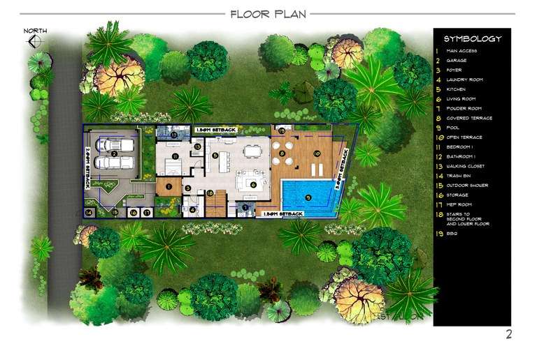 The main floor is centered around a spacious, open-concept layout that brings together a fully equipped gourmet kitchen, a cozy living room, and a welcoming dining area. These spaces flow seamlessly out onto a covered terrace that overlooks the private swimming pool, creating the ideal environment for entertaining or enjoying the beauty of the natural surroundings.