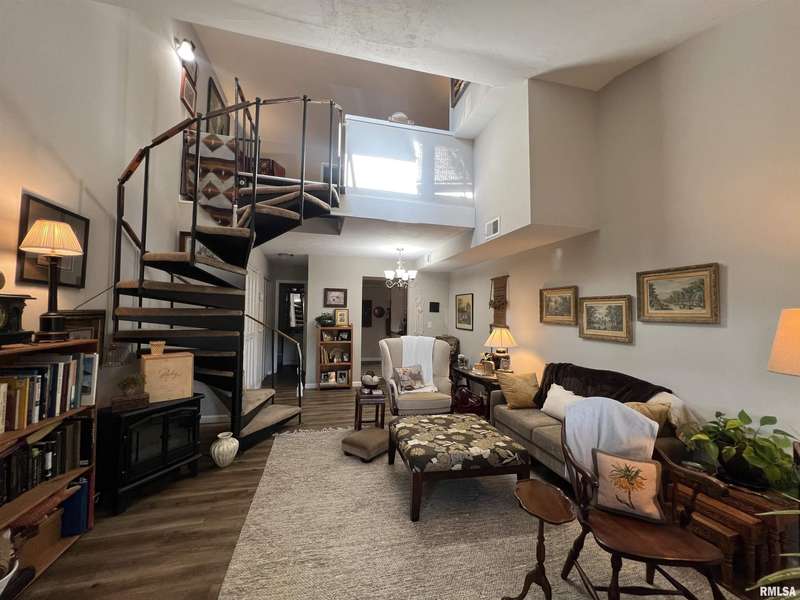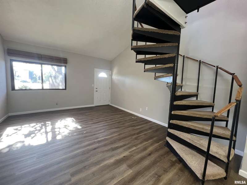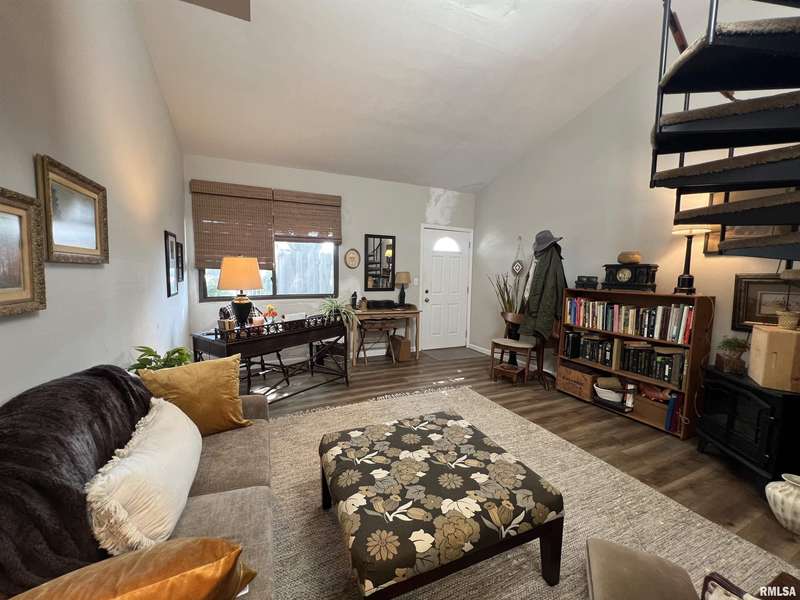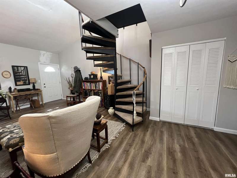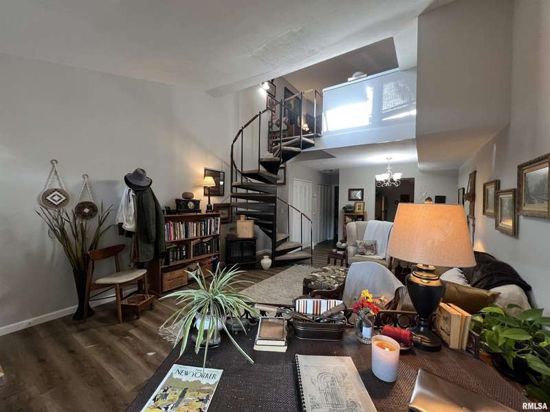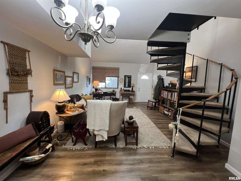 Step into easy, carefree living with this bright and stylish 1BR loft-style condo! The open floor plan flows effortlessly from the cozy living area to the informal dining space—perfect for everyday living or entertaining friends. A striking spiral staircase leads to the spacious bedroom suite above, adding a fun, modern touch. Enjoy peace of mind with recent updates including a newer furnace and electric box (2024), fresh paint, updated flooring, custom window treatments, and refreshed cabinets from 2022. Main floor entry, parking right out front, and a partially fenced patio make everyday life extra convenient. Soak in the natural sunlight streaming through large windows and enjoy the benefits of maintenance-free living—just $190/month covers your Condo/HOA fees! Close to great restaurants, shopping, and located in Dunlap Schools, this condo offers the perfect mix of style, comfort, and convenience.